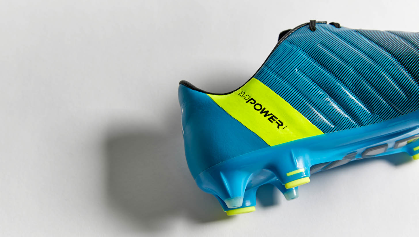 PUMA follow up the launch edition of their third generation evoPOWER boot with a classy "Black/White/Atomic Blue" combination.
