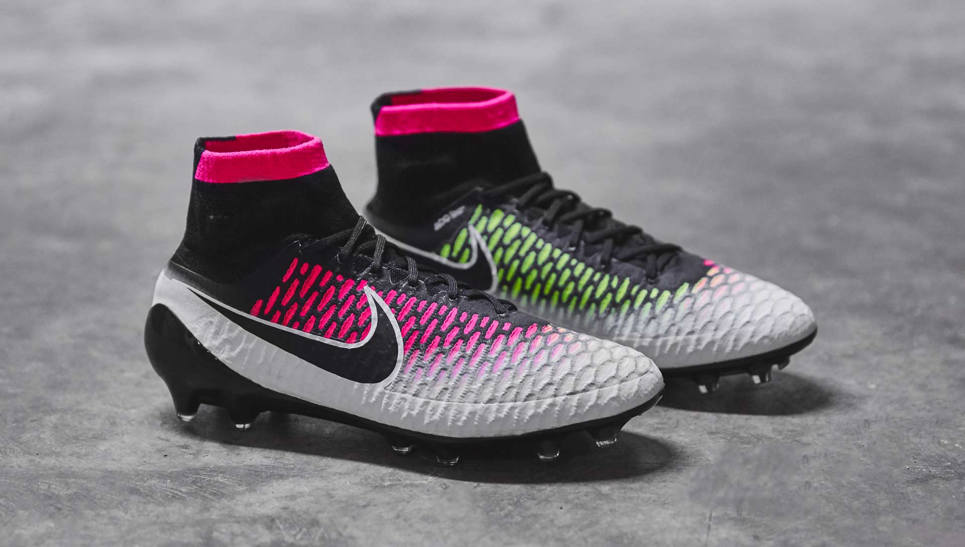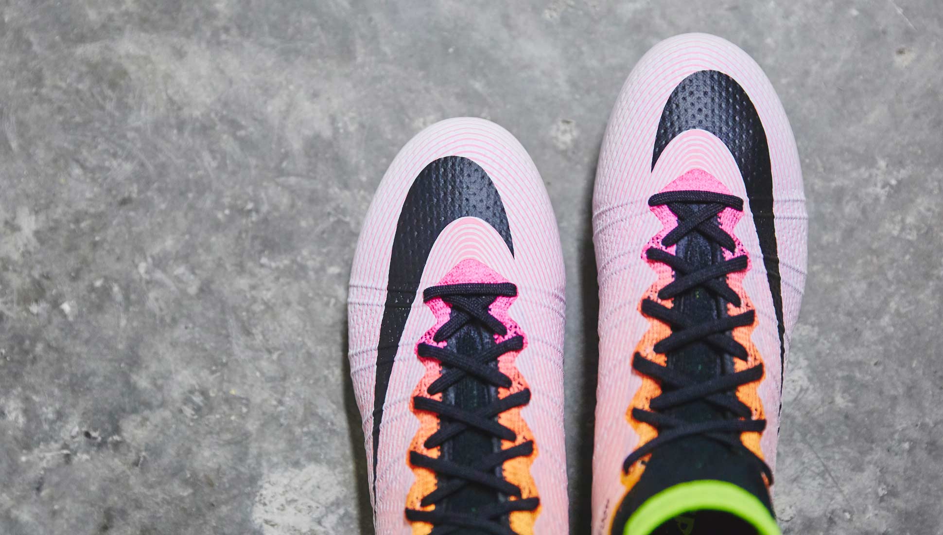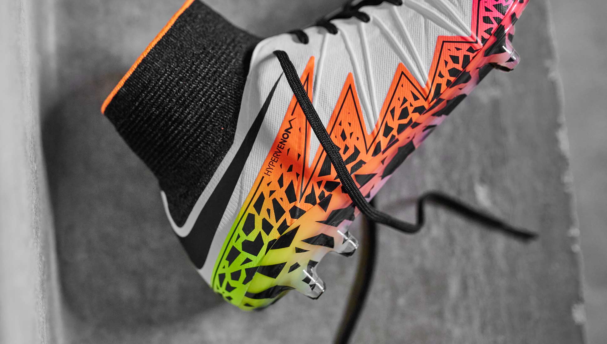 Splashing white uppers with fluorescent pops of pink, volt and orange, Nike have gone all out with the Radiant Reveal Pack. Colourful concoctions are placed on the soles of the Tiempo Legend 6 and Hypervenom Phantom II, while the Mercurial Superfly IV and Magista Opus each twists and turns the Radiant design to make it their own.