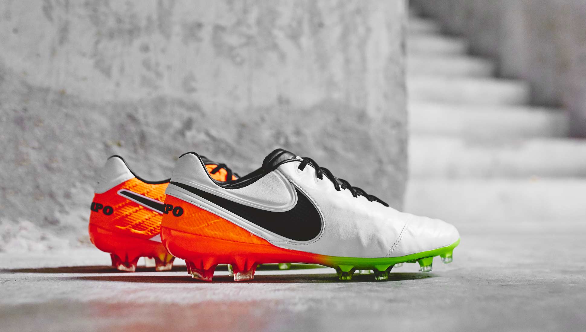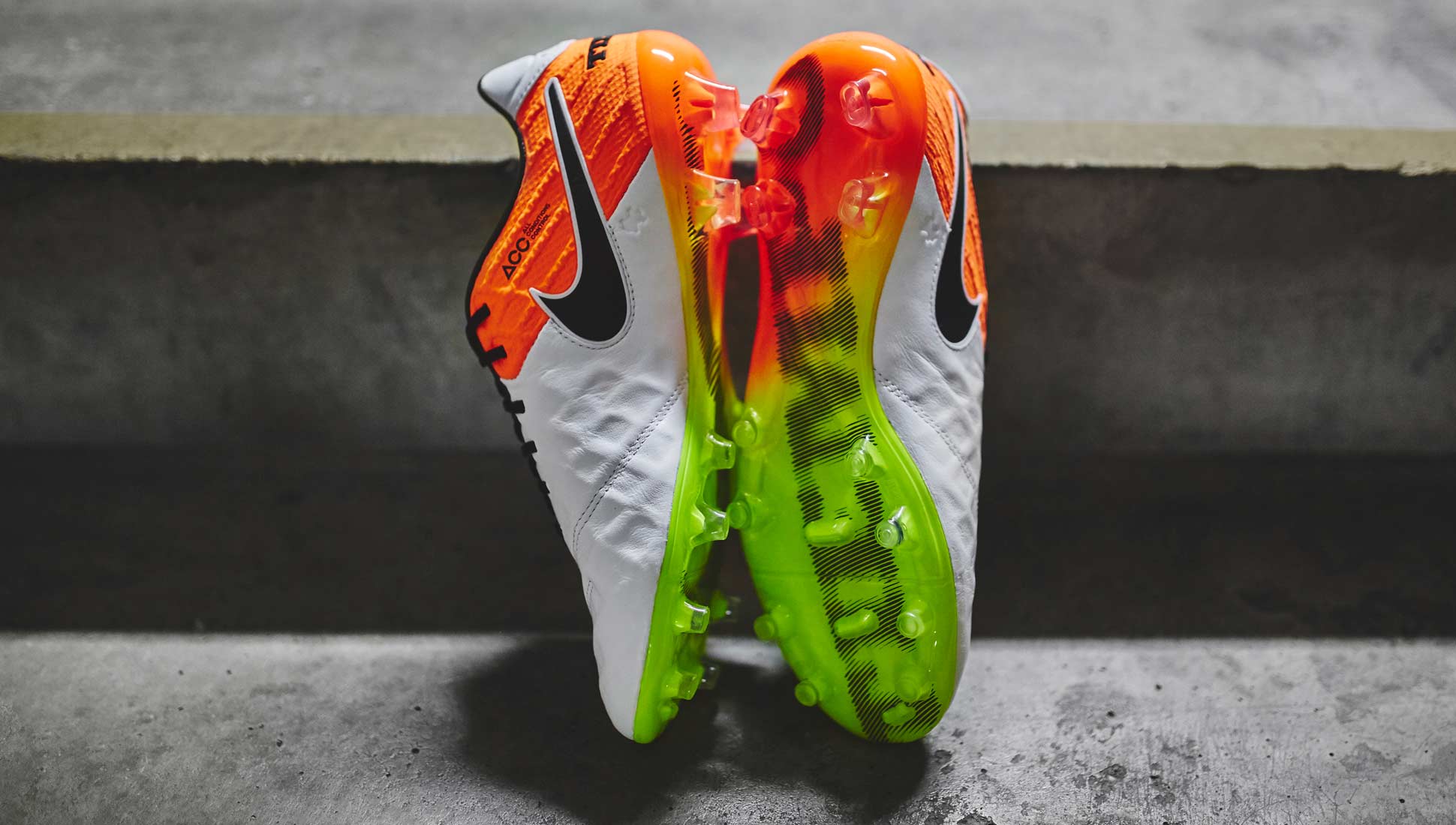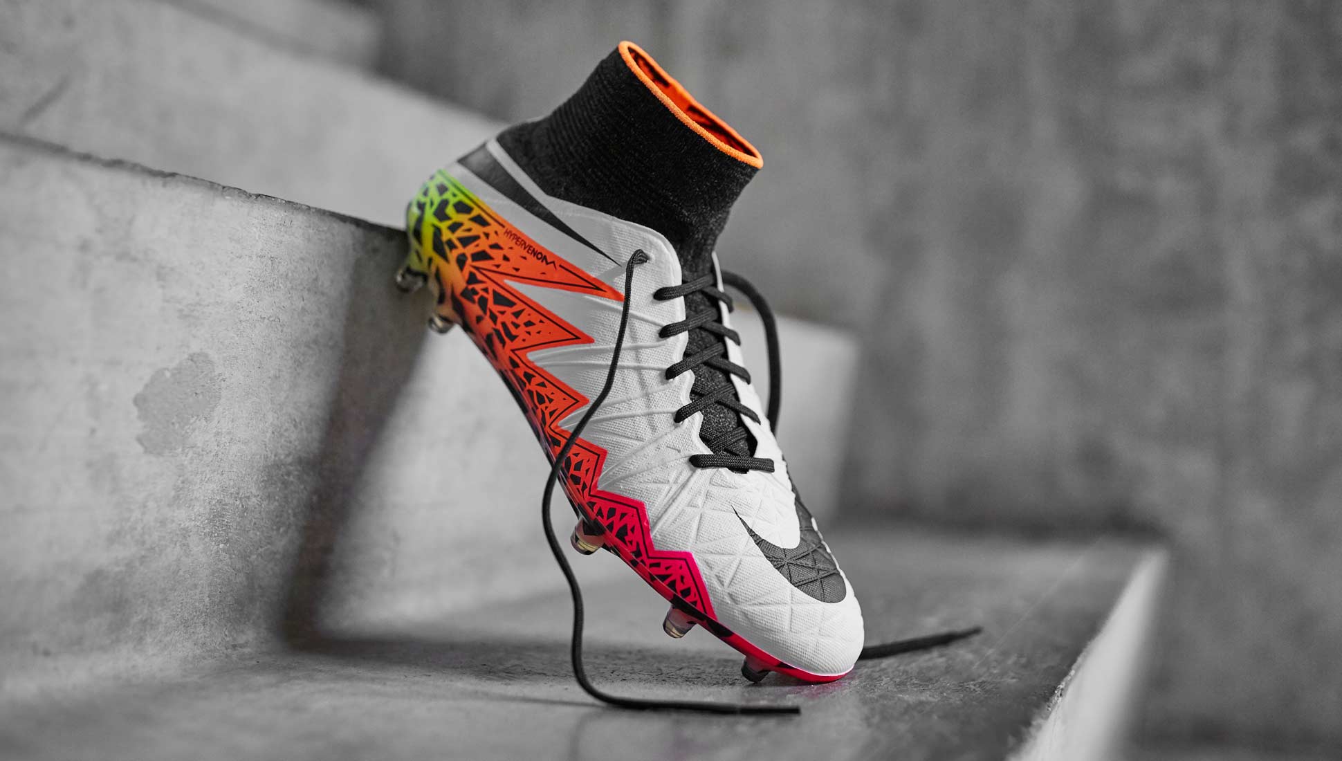 Splashing white uppers with fluorescent pops of pink, volt and orange, Nike have gone all out with the Radiant Reveal Pack. Colourful concoctions are placed on the soles of the Tiempo Legend 6 and Hypervenom Phantom II, while the Mercurial Superfly IV and Magista Opus each twists and turns the Radiant design to make it their own.