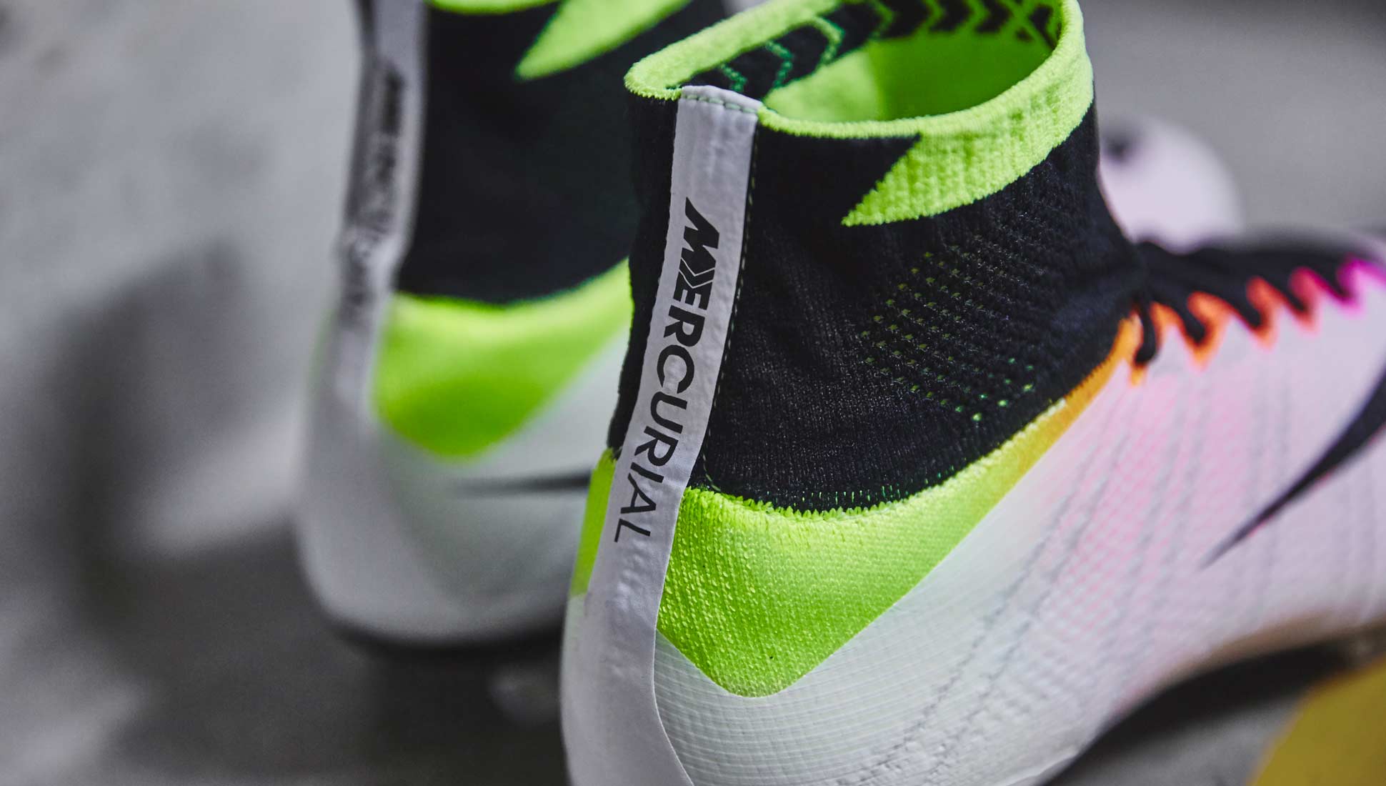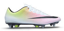 Adding a little more embellishment into the mix is the Mercurial Vapor X. Wrapped in a rainbow of contour lines across the Teijin microfibre canvas, the artistic boots boast an energetic and unabashed personality. A pinstripe makeover with paint sized proportions. We're down.