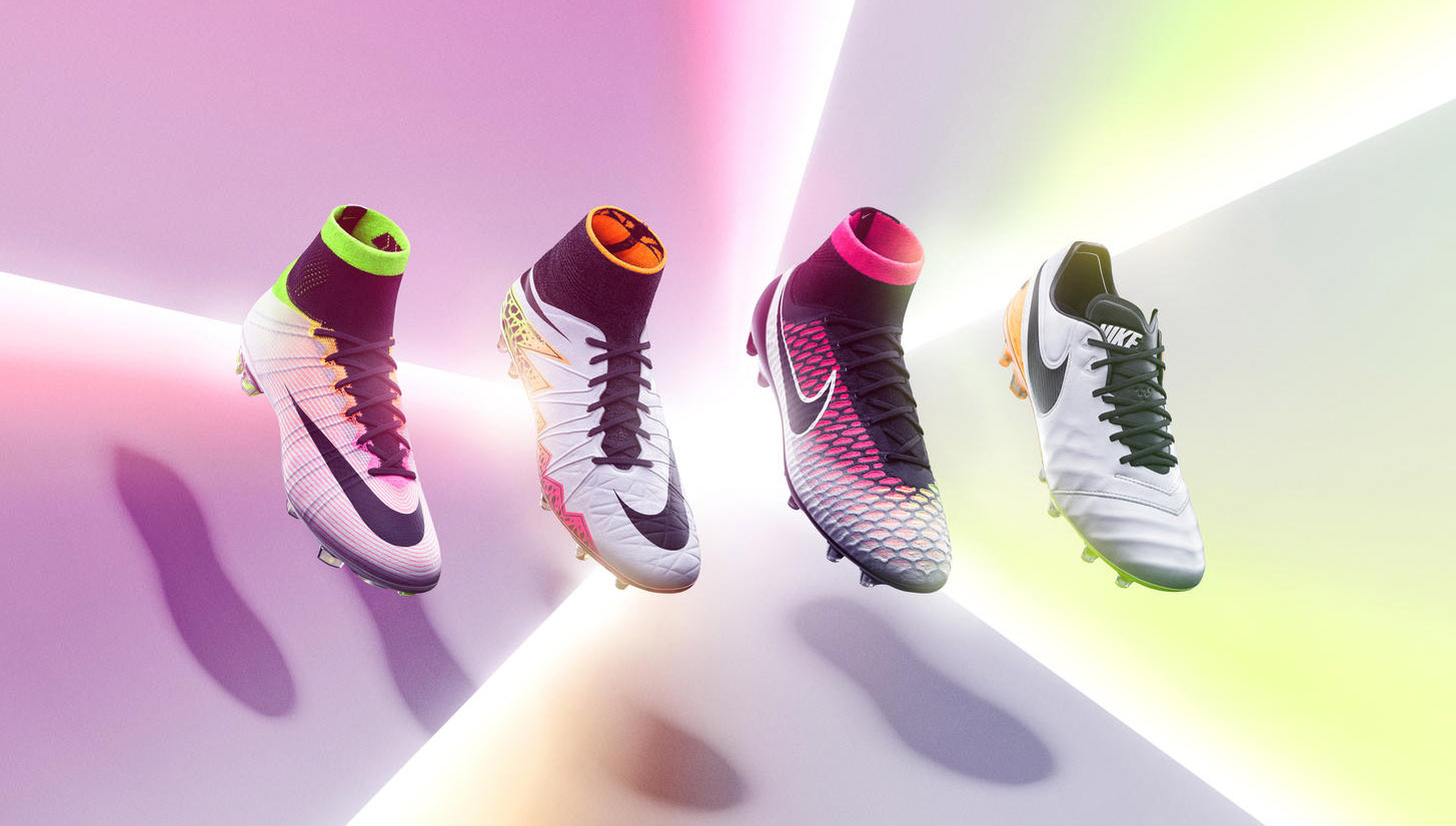 Colourful concoctions are placed on the soles of the Tiempo Legend 6 and Hypervenom Phantom II, while the Mercurial Superfly IV and Magista Opus each twists and turns the Radiant design to make it their own. Nike have also rolled out a complete collection of FootballX offerings and women's editions in full 'Radiant Reveal' wraps to complete football's widest range. The whole family is in on this one.
