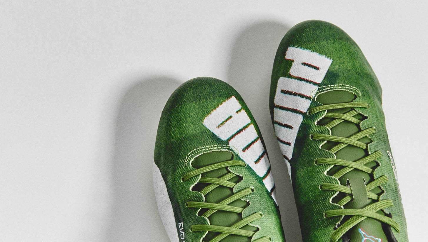 The evoSPEED is the evolution of the v1.06 incorporating ten years of PUMA lightweight technology and the grass print design was a boot that established the brand at the forefront of the speed boot market while paving the creative path for more adventurous designs now commonly associated with speed football boots.