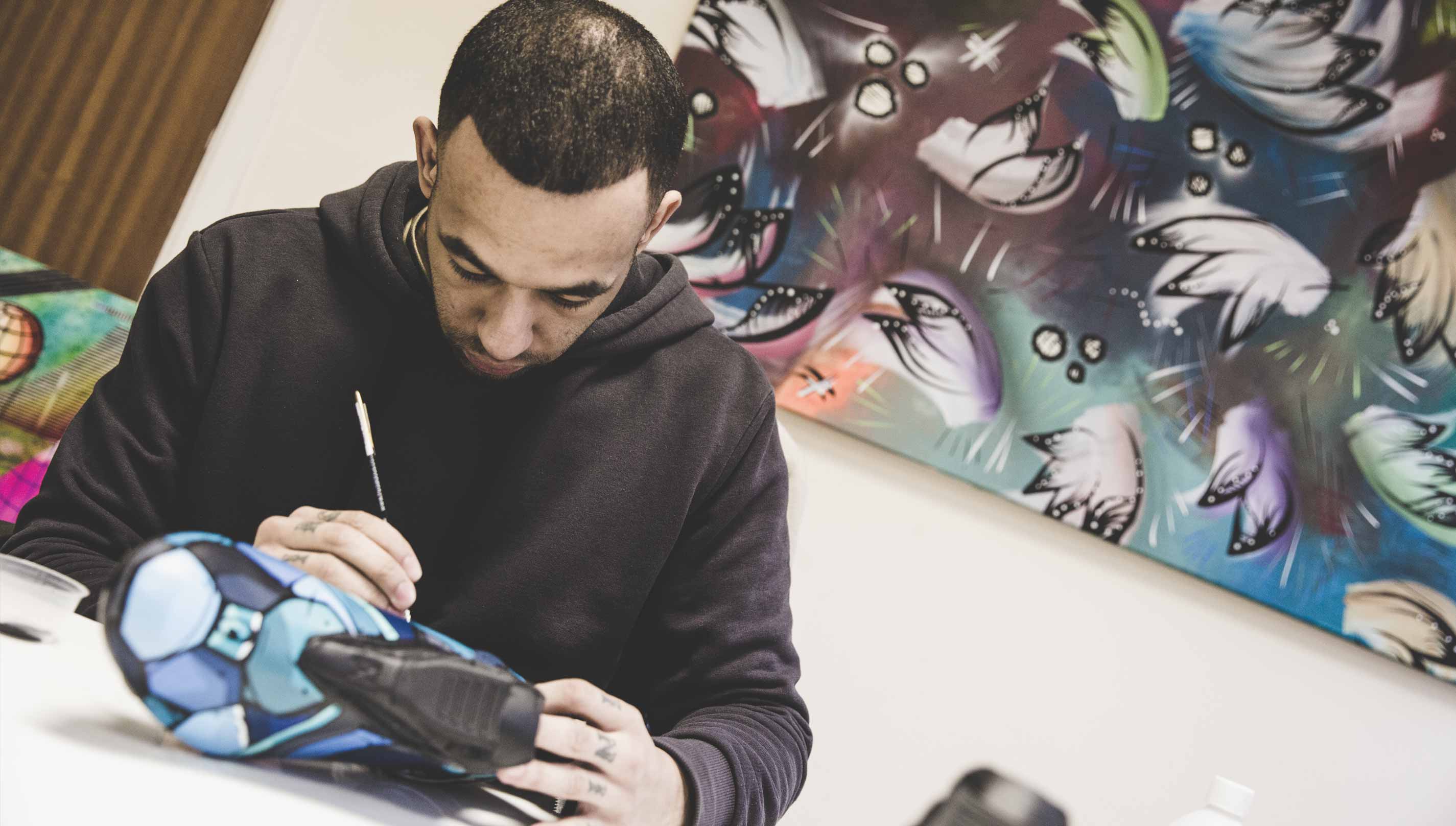 An avid sneaker modifier and collector Ben adds his personal touch in creating shoes and boots for the likes of Karim Benzema through to Hector Bellerin, his connection with the game comes from a unique place and he's finally chosen to enter the football boot world with the resurgent brand he's found a natural connection with.
