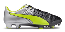 Switching the primary colours of the evoSPEED SL II the evoPOWER takes on a darker vibe than its speed-styled sibling for a more understated look. The "Safety Yellow" and "Pink Glo" were plastered on the footwear of the players competing in EURO 2016 but now PUMA have trimmed those colours back to just the Form Stripe, interior and stud tips for a design that is focused on celebrating the knockout stages.