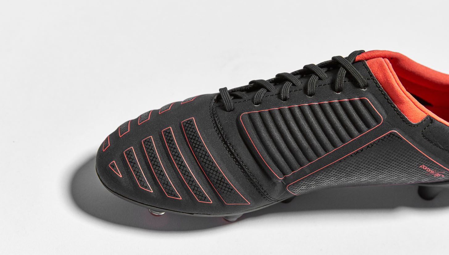Dropping in a black and grenadine colour scheme that splashes across the Medusae and Velocita, the UX Accuro features dedicated touch zones on the instep to improve grip and first touch. The youngest member of the Umbro family also offers smooth strike zones in the forefoot to help deliver accuracy. A boot that can fill the void left by the popular Nike CTR and adidas Predator silos, both of which offered control and shooting technology on the upper.