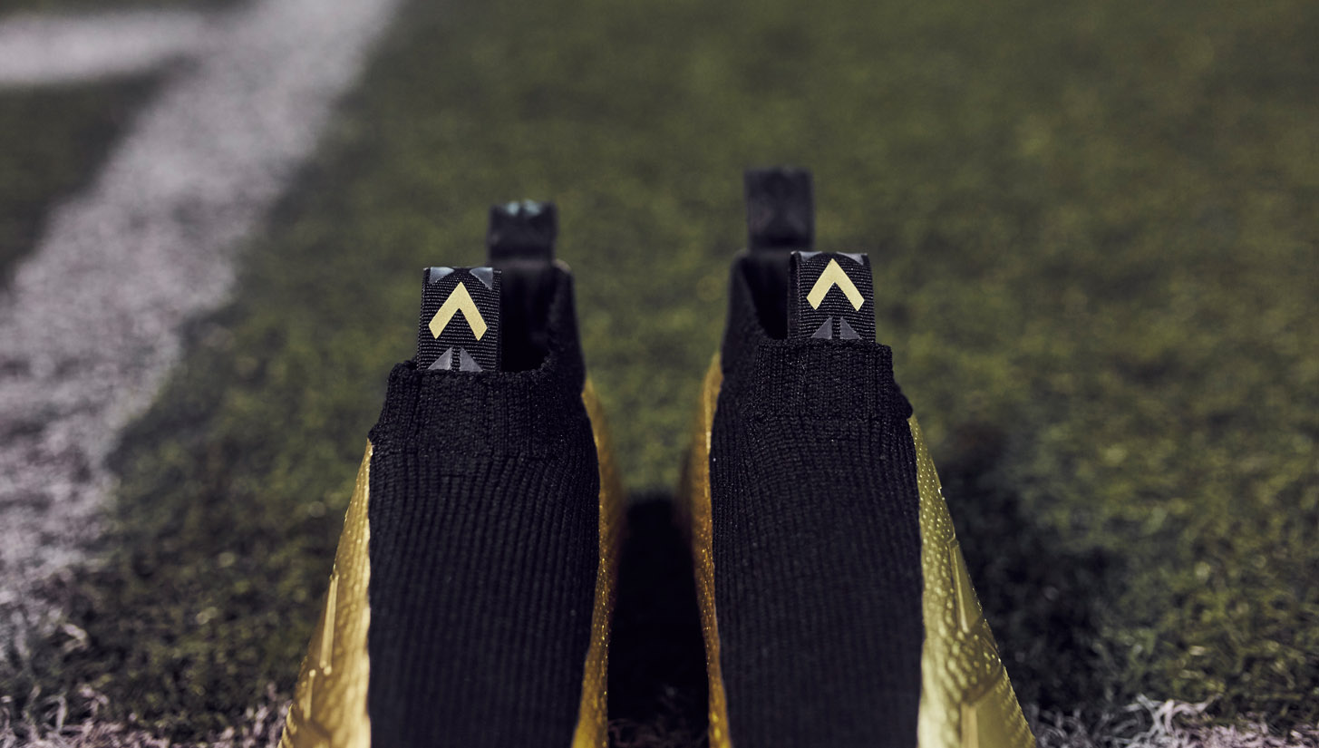 As for the tech, it's just that adapted k-leather panel on the forefoot that's different from the normal ACE 16+ Purecontrol technology. The Purecut laceless upper and lightweight Sprintframe still bring the Purecontrol innovation, they're just painted in a full fat creative coat of golden gaze. Straight up bling tings.