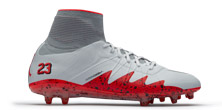 The NJR x JORDAN Hypervenom football boot takes inspiration from the Jordan V, Neymar Jr.’s favourite. The Jordan V’s reflective tongue is reinterpreted on the tongue-less Hypervenom in the form of a bold reflective Swoosh and Jordan’s iconic cement print is recreated on the soleplate of the Hypervenom. As with the first boot worn by Neymar in the Olympics, the second "white/red" update will be supported by the Barca man for a handful of games in La Liga this month.