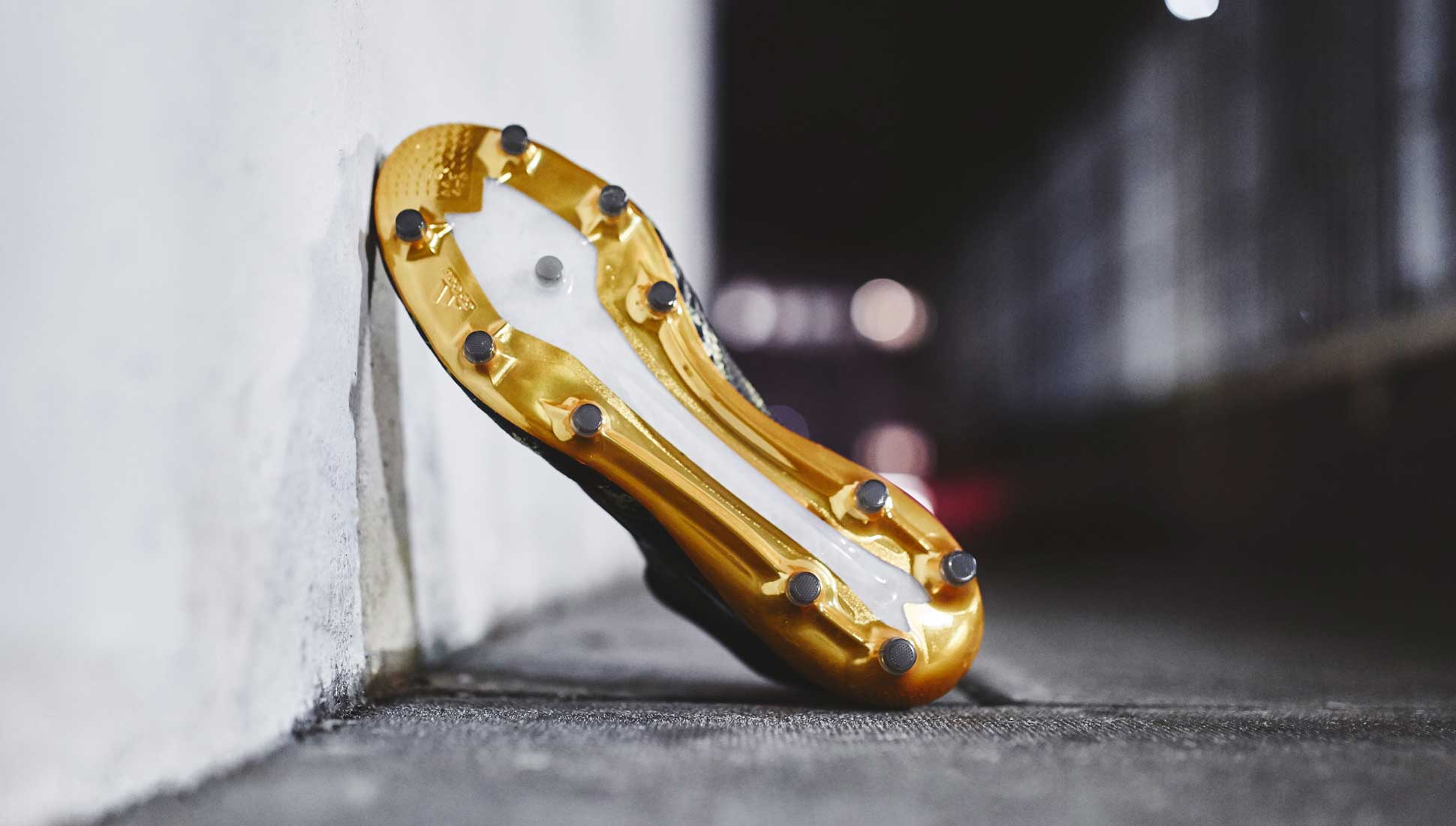 Headlining the previously mentioned adidas x Pogba Collection on the performance side of things, the new ACE 17+ Purecontrol is wrapped up in Pogba’s signature black and gold colourway. The boot comes with extra gold plating, a unique marble effect on the upper, and ‘Pogboom’ etched on the heel. Rounding things off in full bespoke fashion is the trademark ‘PP’ logo on the tongue.