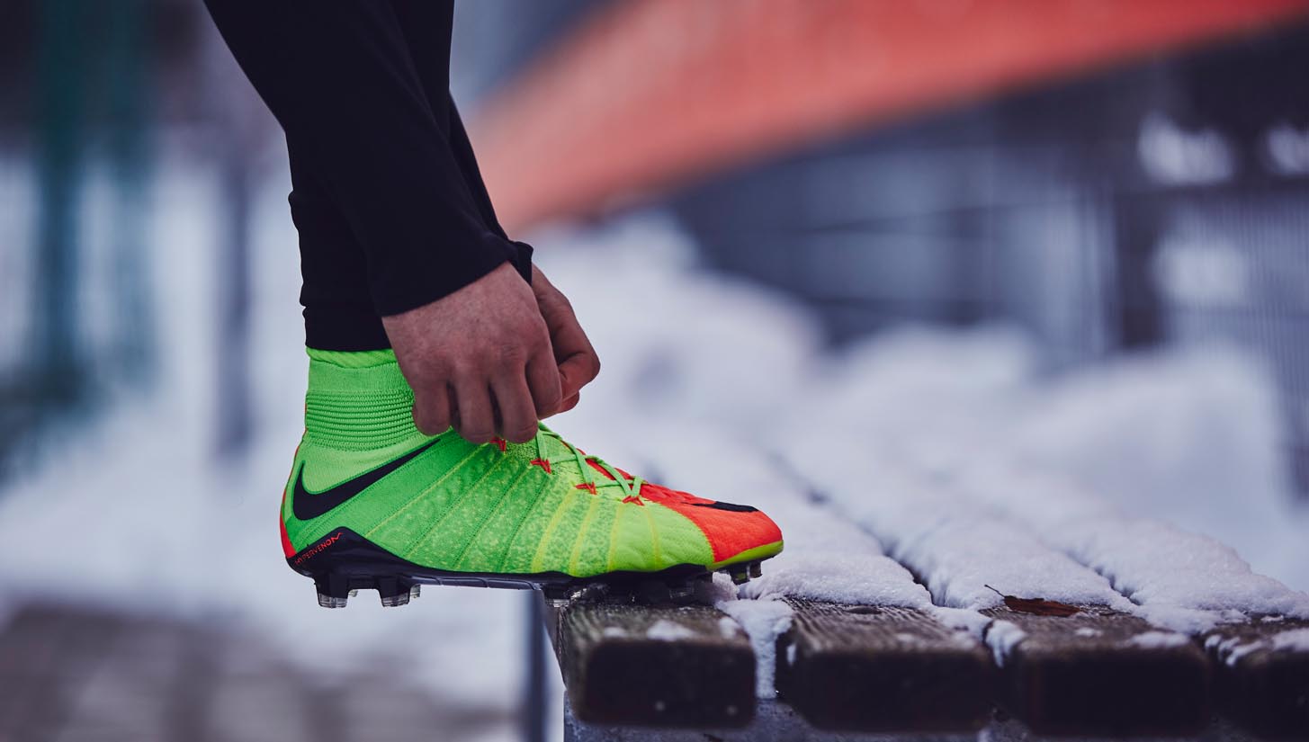 Almost four years on since the Hypervenom was born on the sunny beaches of Rio de Janeiro, and things were a little colder for the arrival of the third-generation boot as we joined Nike in the Munich snow for the launch of the Hypervenom 3. Nike don't do half measures and their first attack of 2017 left the ball in the net and a Swoosh in the snow.
