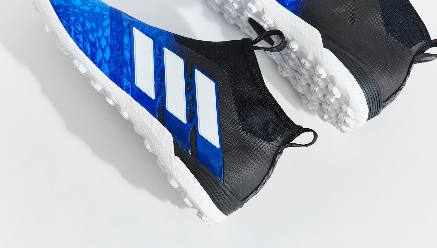 The adidas ACE Tango 17+ Purecontrol Turf features a PRIMEKNIT upper with a layer of NSG film to provide added control. Transformed to cope with the rough and tumble demands of small sided football, the shoe features a stretchable layer of TECHFIT material placed between the colour split to optimise comfort, whilst an EVA strip features above the heel’s BOOST to offer stability. Unlike the on-pitch boot, the cage version features BOOST on the heel only, designed to offer comfort, stability and energy return on a hard surface.