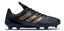 Dressed in a spare suit borrowed from the latest adidas MESSI 16+ Pureagility, the COPA 17.1 Turbocharge edition adopts a traditional black k-leather upper typical of the heritage silo, finished with "Copper Metallic" stripes and branding. Packaged up in a smart aesthetic to offer a simple alternative to the brand's rapidly progressive innovation race. It's leather, it's got laces and it ain't offending your eyes. Many still respectively and understandingly consider that job done.