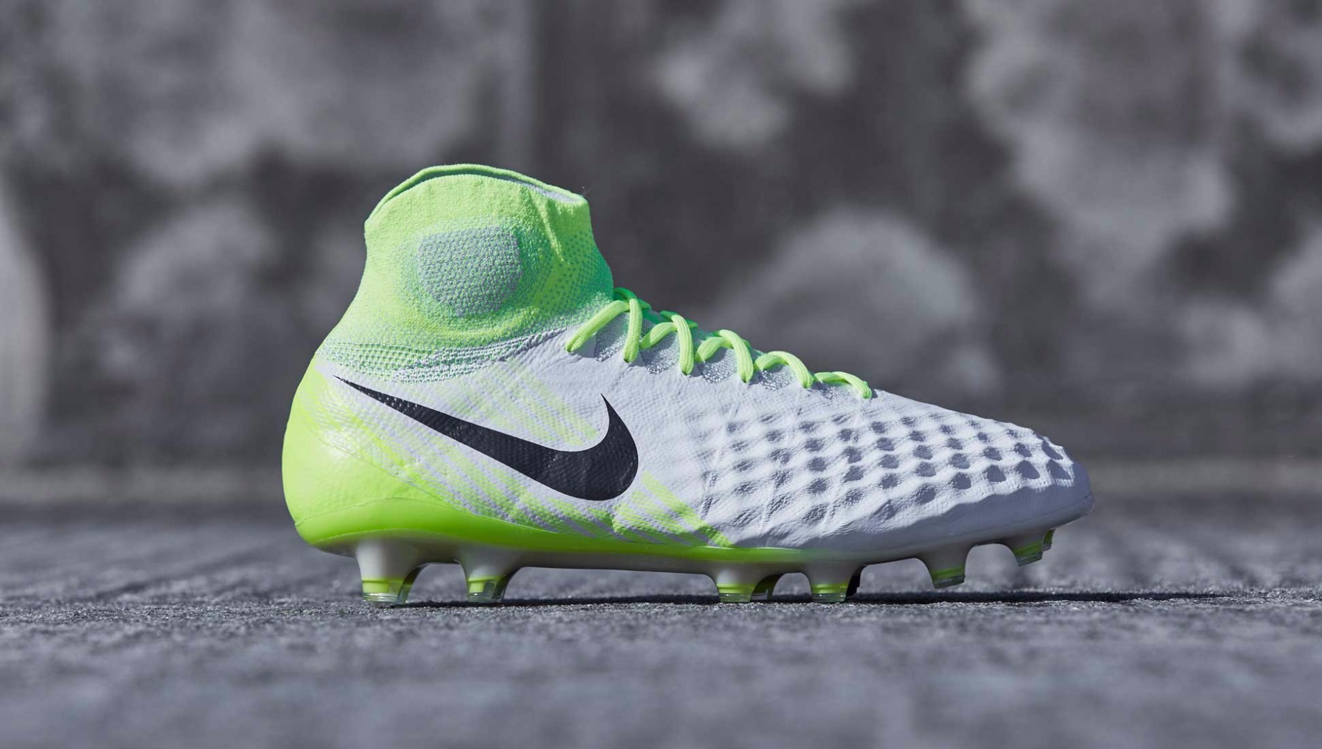 Rather than solid block half-and-half colours found on the 2012 collection, Nike have dropped a steady gradient on the Mercurial and more subtle colouring on the Magista and Tiempo. The Hypervenom boasts the most colour with a combination of "White/Photo Blue", the Mercurial combines "White/Race Pink", while the Magista takes on a "White/Volt" design, leaving the Tiempo being picked out by a "White/Electro Green" wrap.