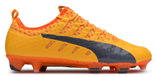 PUMA roll out their Spring 2017 collection of on-pitch colours in vibrant style by throwing shades of sunshine at their leading silos. The evoPOWER Vigor 1 connects with a fist full of fruit in a punchy "Ultra Yellow/Peacoat/Orange Clown Fish" combo.