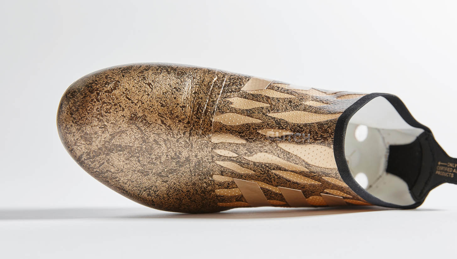 There's been no pattern of Glitch releases, adidas just throw a few out there when they fancy it – and that represents the disruptive model perfectly. A three striped outcast cut adrift from the ACE and X silos the Glitch is as alternative as it gets with a concept that questions the past, present and future of football boot design. Dropping as the 17th Glitch outer-skin option, the "Corrozone Gold" edition joins "Corrozone Silver" and "Corrozone Green" colourways to complete the Corroskin line-up.