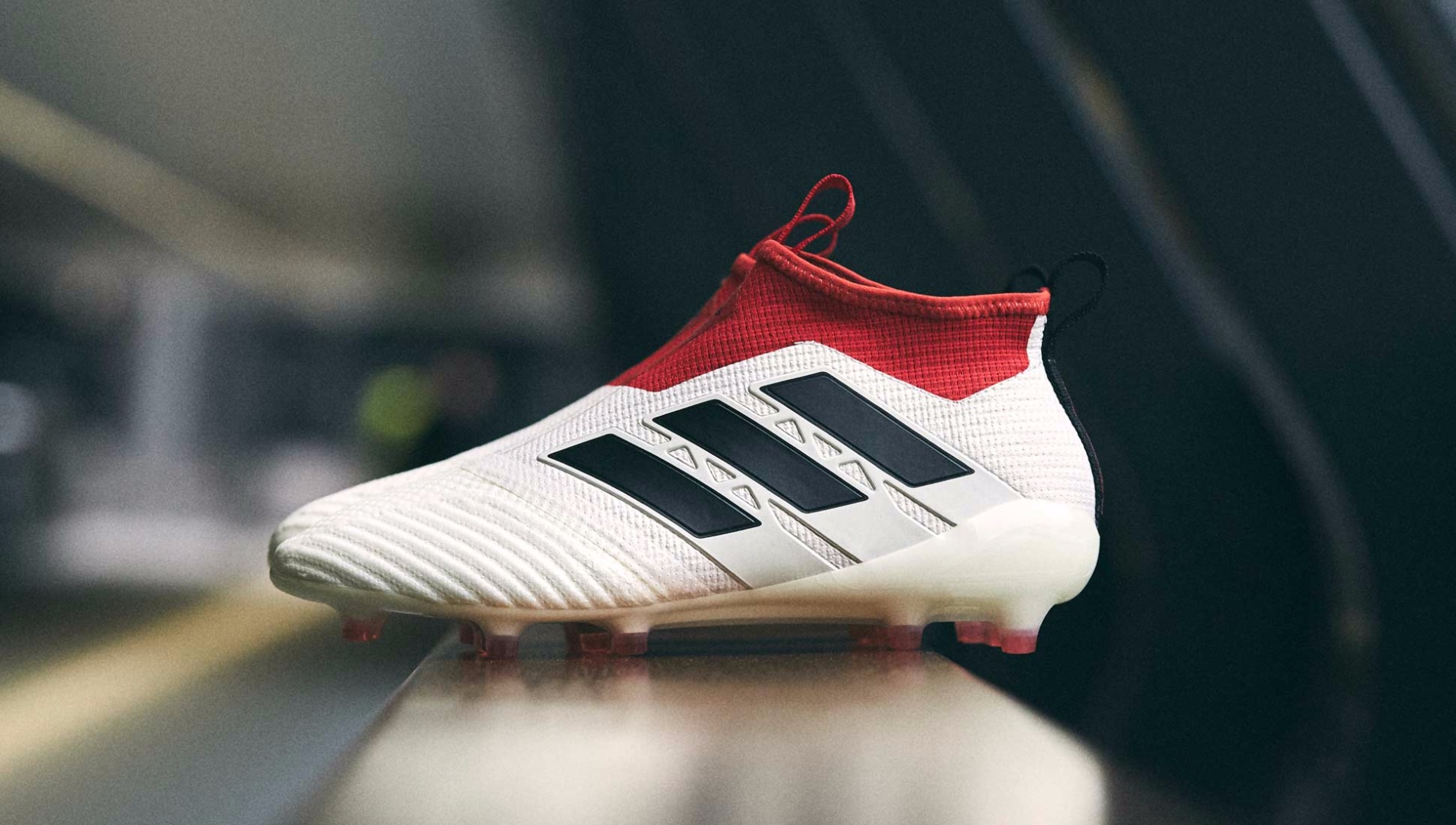 Generations of innovation come together for a celebratory glass of champagne as adidas reach a landmark occasion for one of their most iconic football boot colourways. The adidas ACE 17+ Purecontrol receives the seal of approval from the Three Stripes by being deemed worthy of wearing the Champagne suit once worn by a legend. Nods to the Mania appear in the form of a clean Champagne upper and red detailing as a tribute to the iconic tongue.