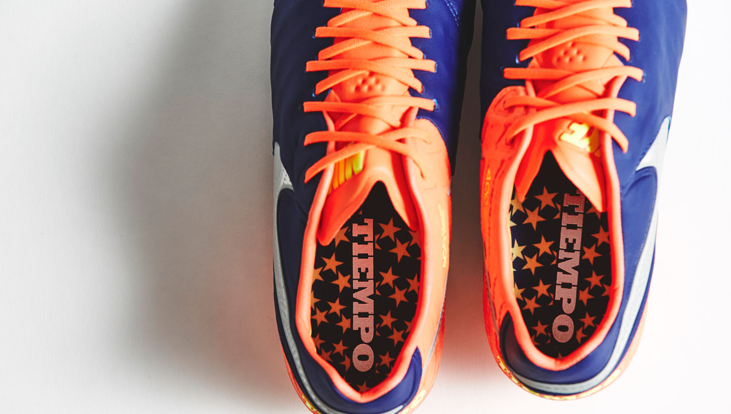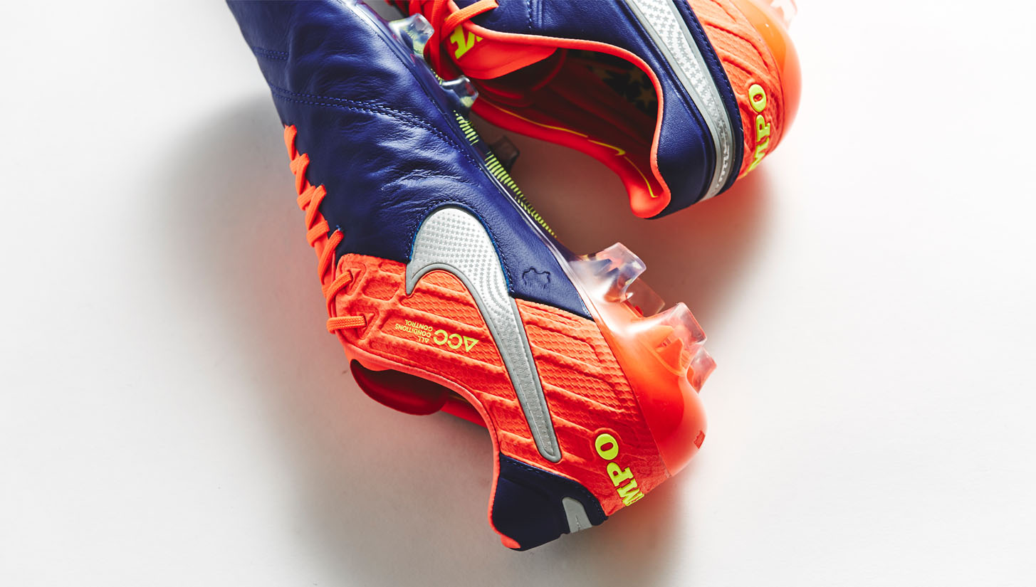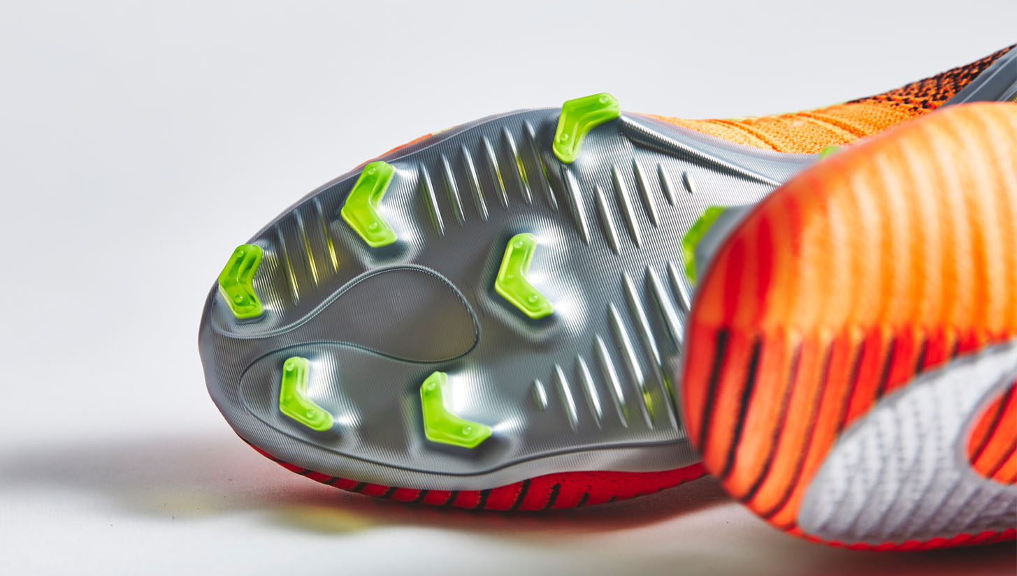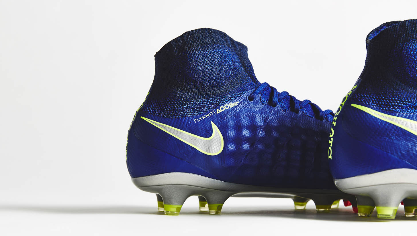 The Mercurial Superfly V and Hypervenom Phantom 3 headline the collection with bold colours and sharp aesthetics while the Magista Obra II and Tiempo Legend 6 bring a more modest approach to the 'Time To Shine' pack. It's the Mercurial that has the most standout game due to it's modified graphic on the instep of the boot; the iconic Swoosh logo is replaced with strong 'NIKE" branding, the first time Nike have done this on the fifth generation Superfly.