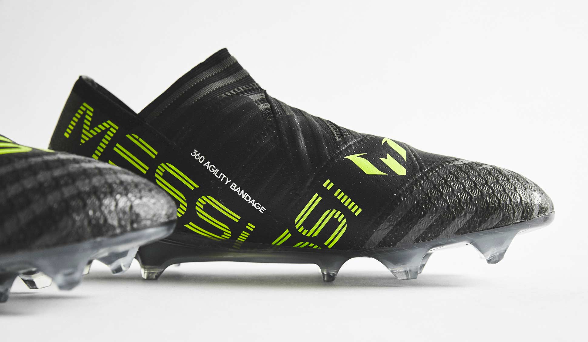 It’s a colourway we would have expected to land on the standard NEMEZIZ without the ‘MESSI’ label. Featuring a black upper with grey shades across the trademark striping of the boot, the adidas three stripes stand out in contrasting white while the MESSI branding pops in a “Solar Yellow”. The AGILITYBANDAGE that wraps the boot acts as the canvas for Messi’s logos, while the heel tape features both the NEMEZIZ and Messi logo.