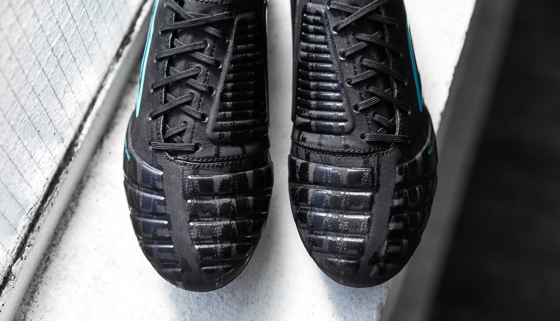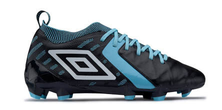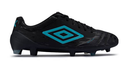 Umbro have given the Velocita 3 the most vibrant of updates in the collection with an aqua aesthetic that stands strong. The Velocita 3 features a lower-cut collar in comparison to the Medusae II, but is still Umbro's most prominent and popular boot on the professional scene. The UX-Accuro stays true to its character by dressing itself in an all black coat with blue branding. Safe.