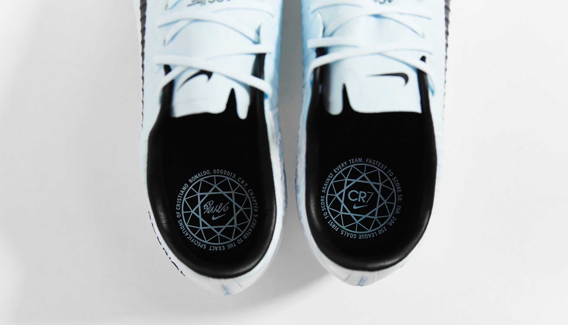 The CR7 Chapter 5 boots feature that diamond-inspired graphic on a white base that sparkles under the lights. The upper moves away from multi-colour details of the Superfly in favour of a more icy graphic. On the medial side of the boot, a textured CR7 logo provides the trademark. D'ya know what? They might look even better than the Superfly...
