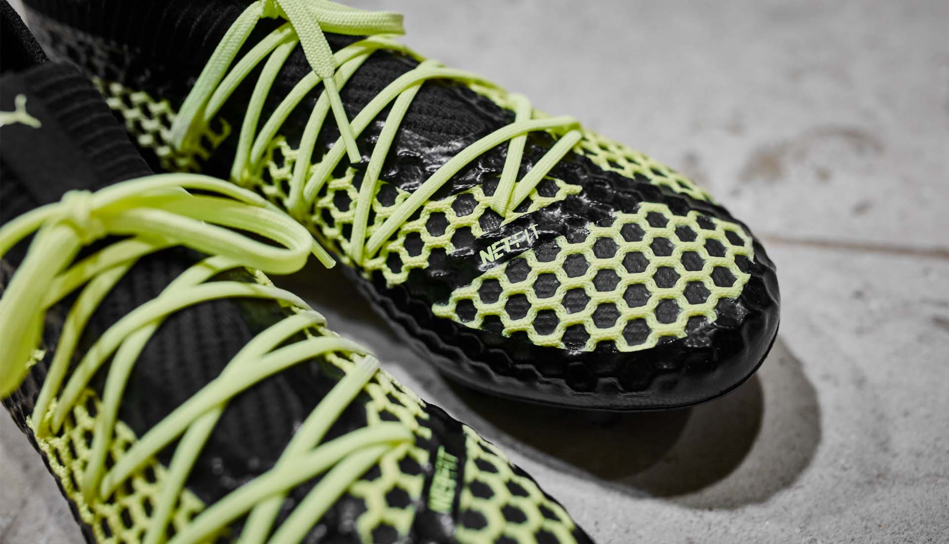 Let's get to it. What we're looking at on the Future 18.1 is NETFIT technology – this is the yellow net material on top of the upper that allows the player to lace their boots in any way they want, in order to get the best possible fit, no matter the shape of the foot. Clever, eh?
