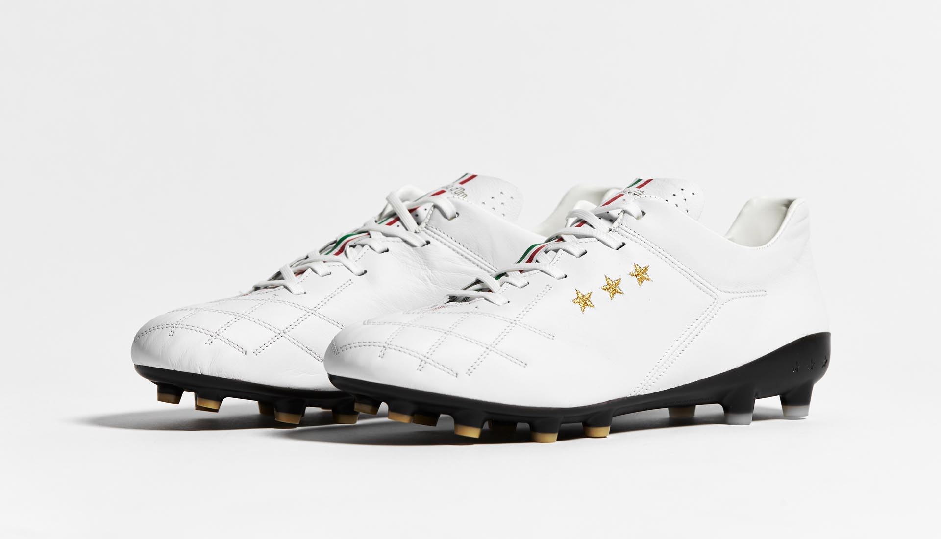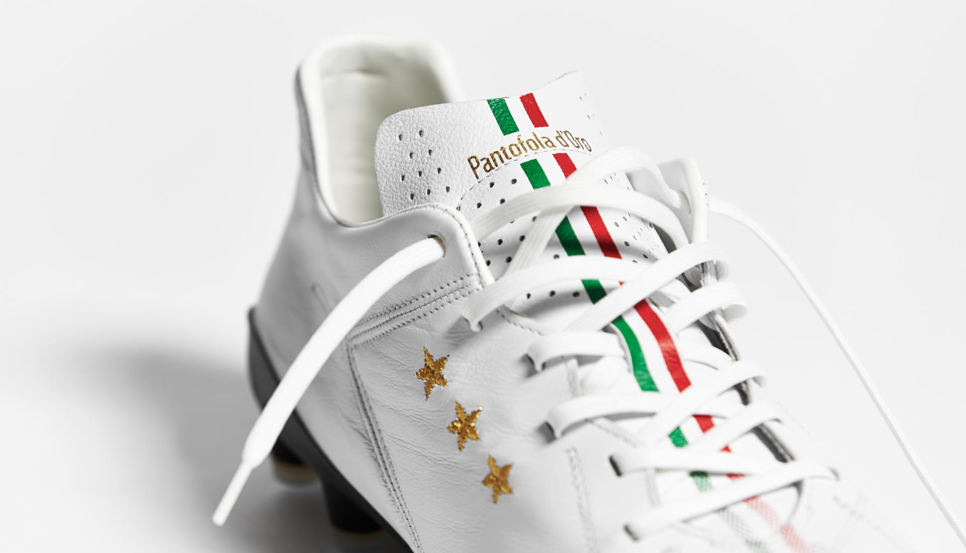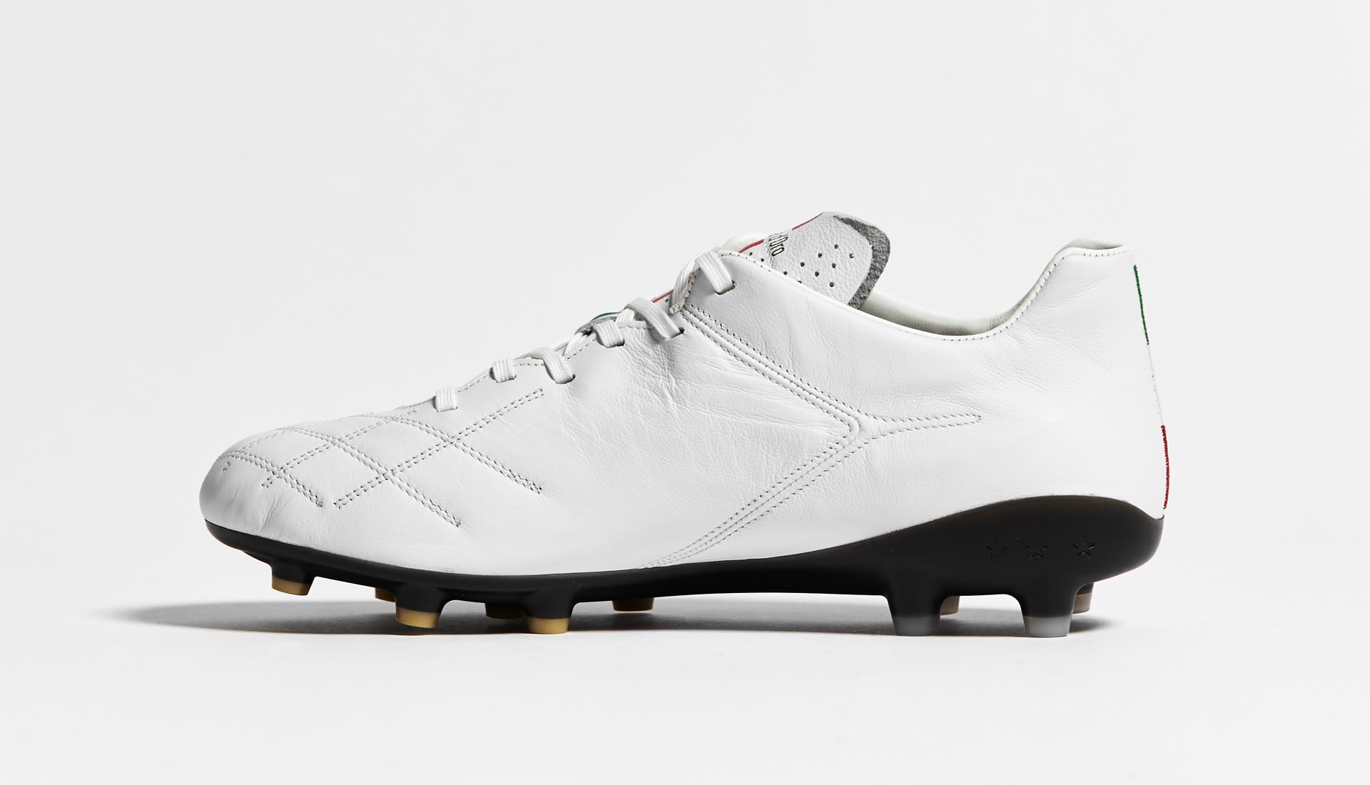 Pantofola d'Oro return for a second colourway on their lightest ever football boot as the 180g Superleggera silo is flipped into a "White/Black/Gold" combination. More high-seeped, high-end Italian craftsmanship.