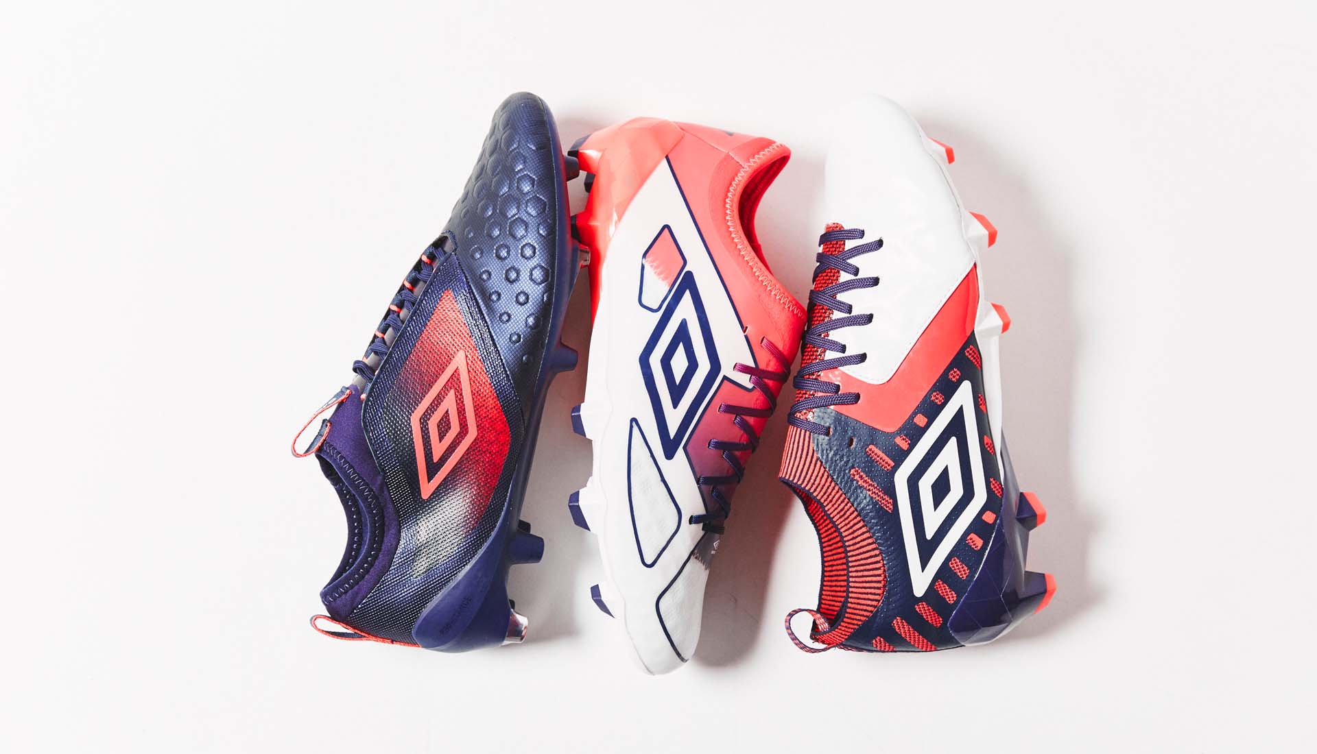 Umbro make their first strides of 2018 with the launch of the new Eclipse Pack. Featuring a next-generation update on the UX Accuro II silo, the Double Diamond also release refreshed paint jobs on the Velocita 3 and Medusae II Elite.