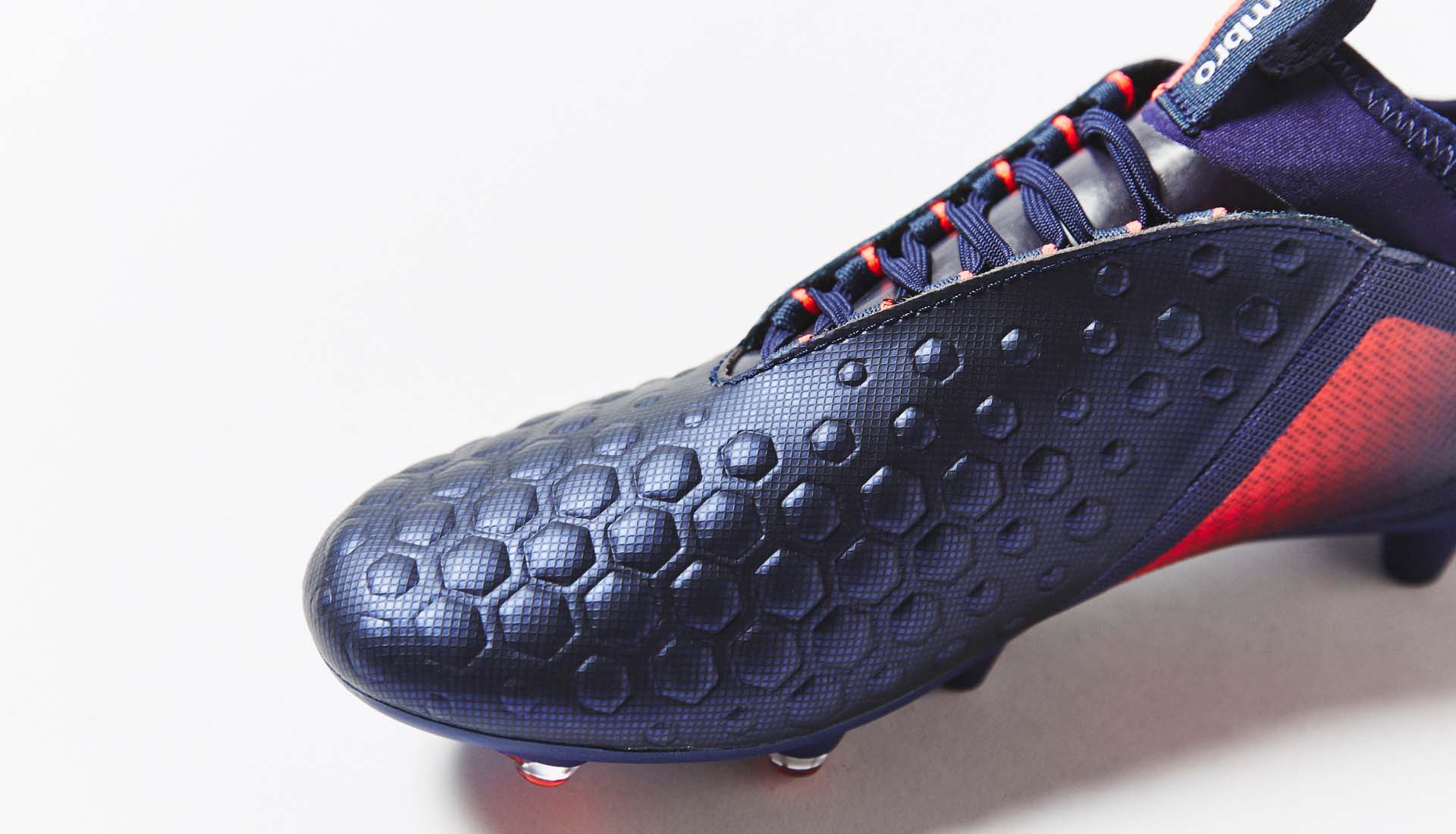 The Umbro UX Accuro II drops in as the second-generation control silo focused on bringing ultimate comfort to players. A neoprene collar combines with a synthetic support cage and microfibre upper for out-of-the-box comfort. Expect to see it on the feet of Everton's Jonjoe Kenny.