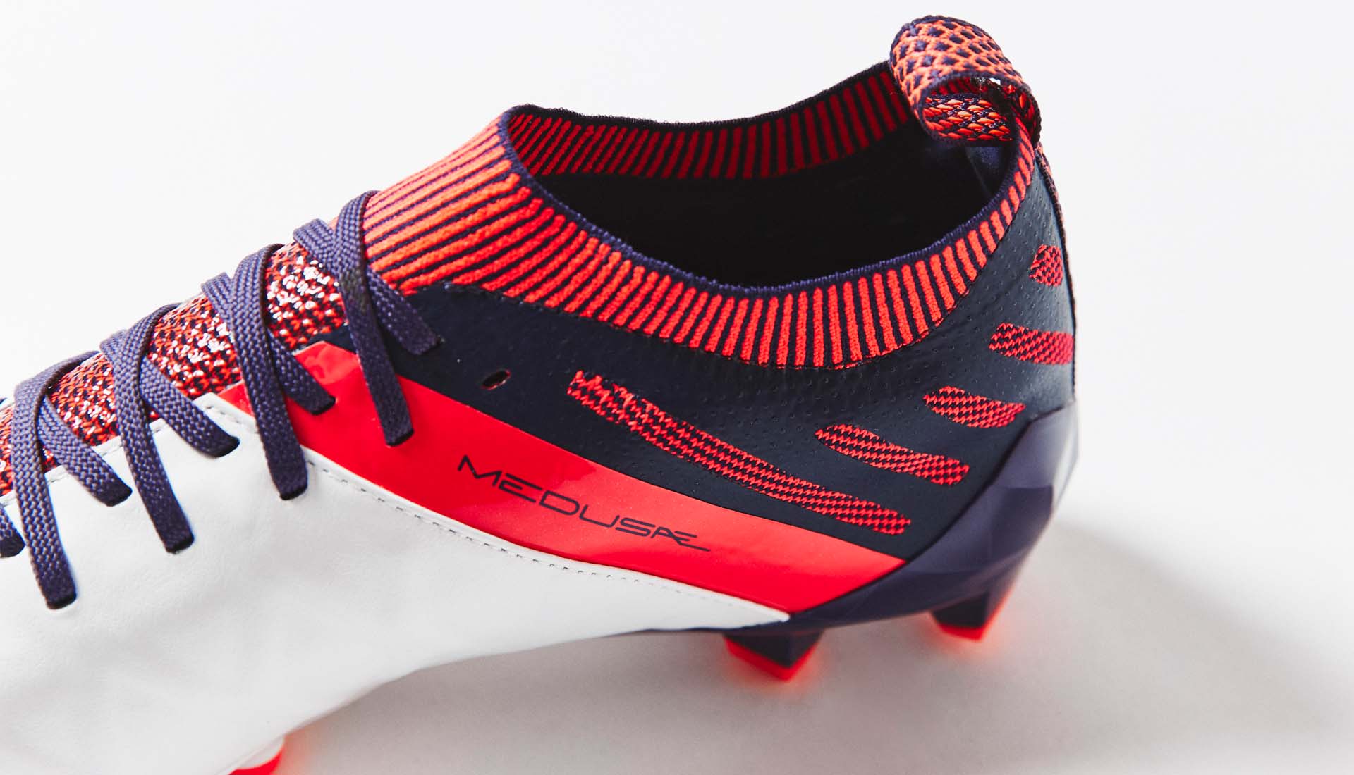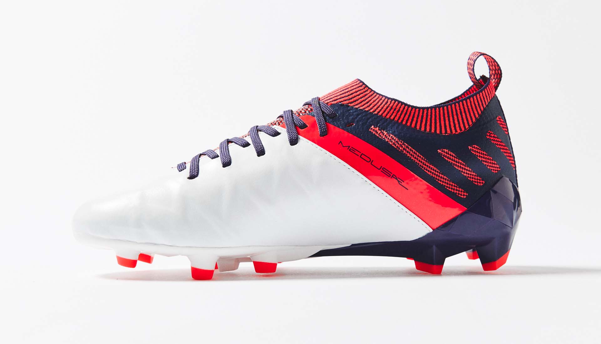 The mid-collared Umbro Medusae II Elite takes on a similar dress code to the Velocita 3 with a predominately white upper accompanied with splashes of pink and purple at the rear of the boot. Besiktas defender Pepe will be amongst the professional players sporting them from this weekend onwards.