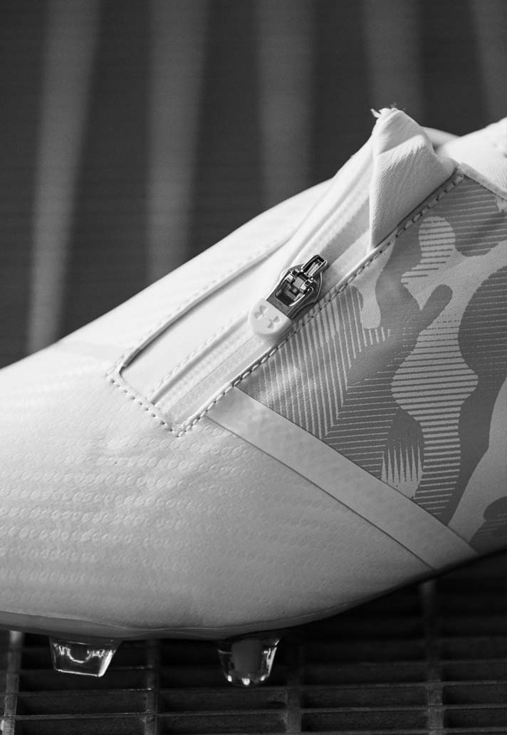Under Armour make their first moves of Spring 2018 by rolling out their next on-pitch football boot collection. The zipped Spotlight Pro silo comes wrapped in a white camo graphic to create a clean aesthetic.