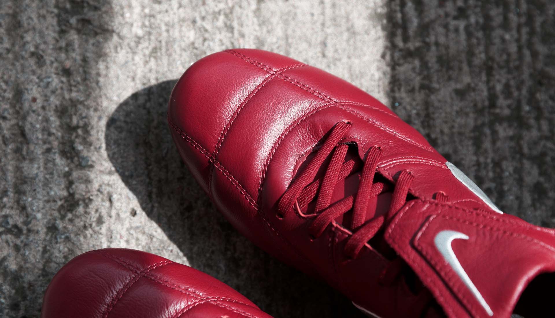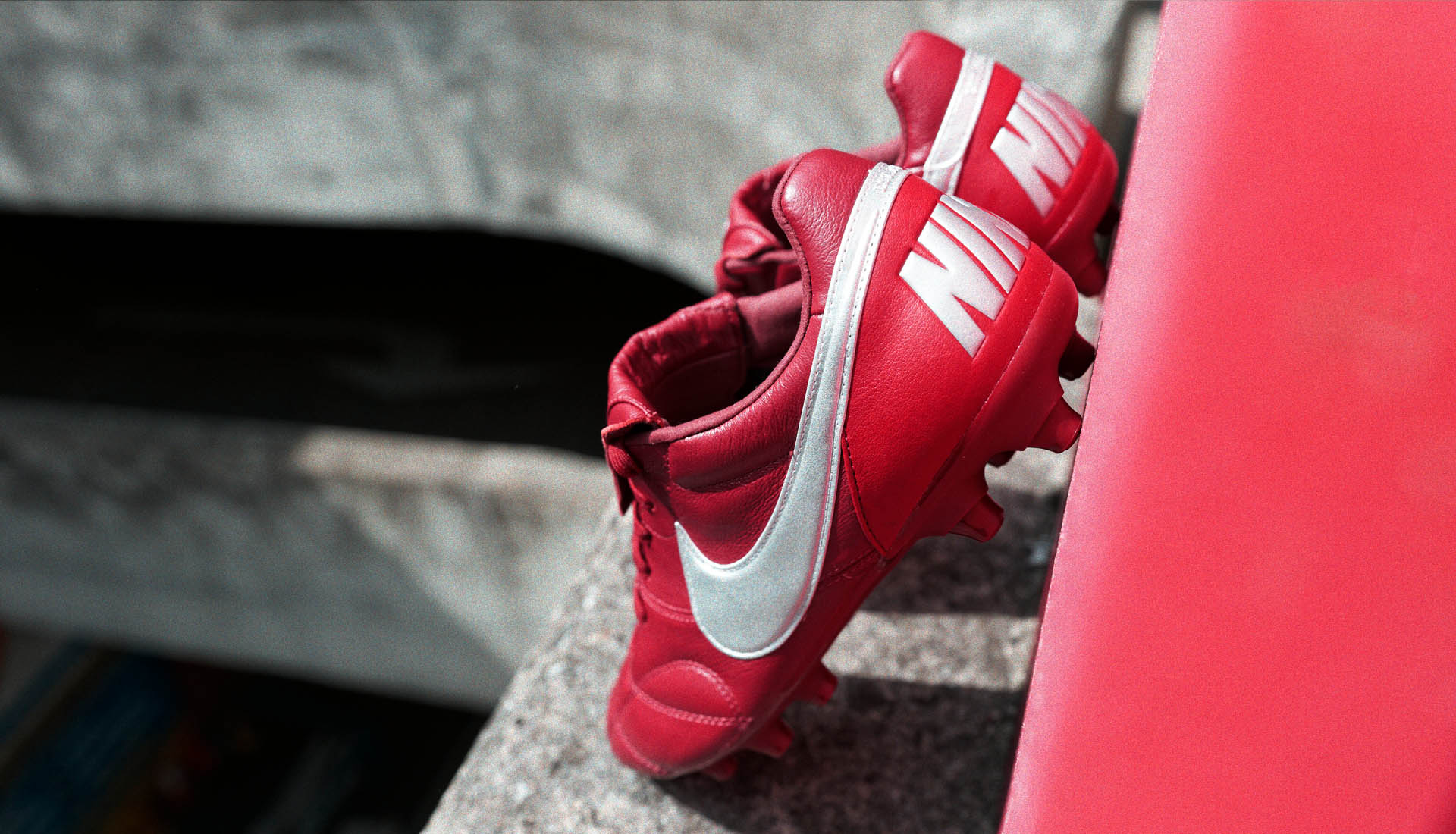 Dropping in a "Team Red" colourway to mirror the recent Mercurial and PhantomVSN releases, the Premier 2.0 lands as a firm ground exclusive option for players who are still into that leather feel and ultra-comfort warmness. Deep red with white Swooshes. Done.