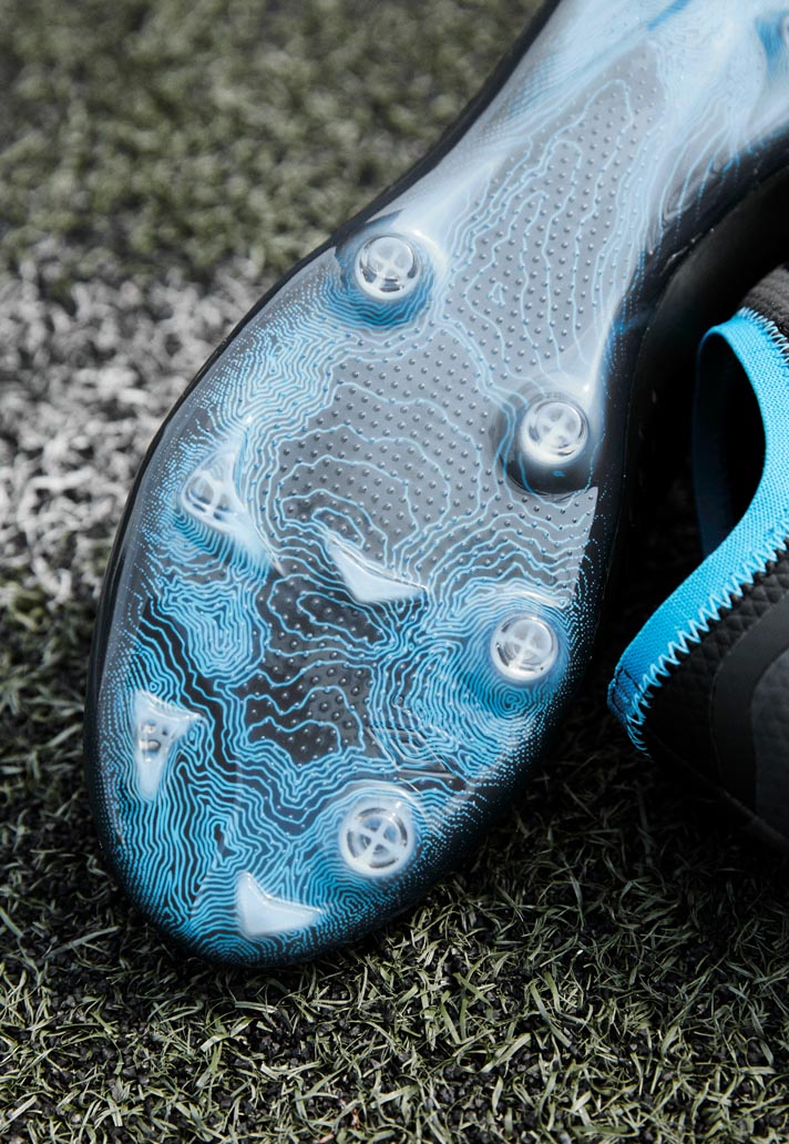 On the upper of the boot, a tri-layer construction provides lockdown and flexibility. A bottom layer of neoprene gives a seamless feel against the foot; a ‘memory-flex’ middle layer offers stretch and flexibility; and then the protective top layer gives a snug fit. The sock construction on the boot has also been redeveloped, with a new shape allowing for a better fit around the ankle and increased comfort.