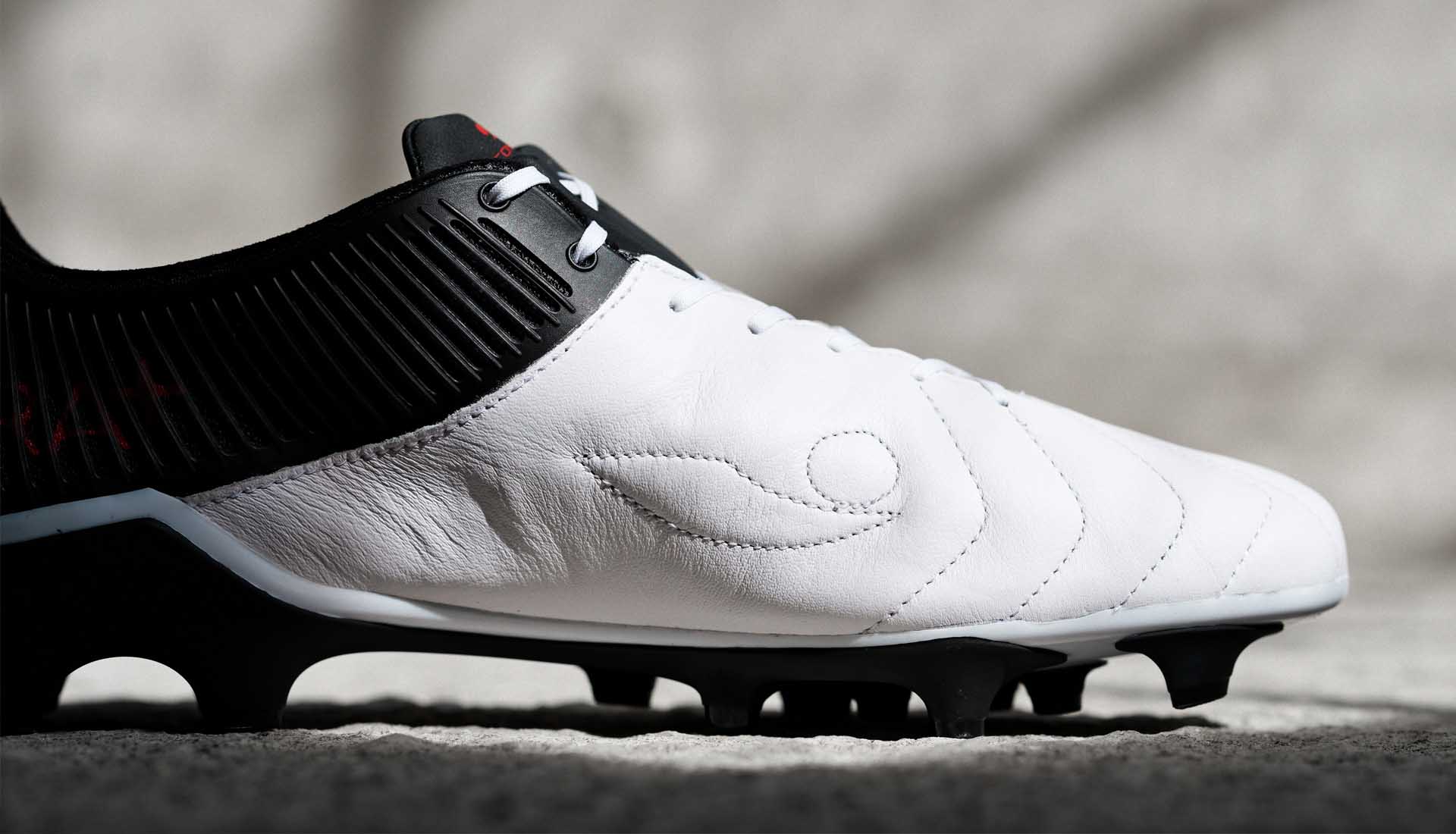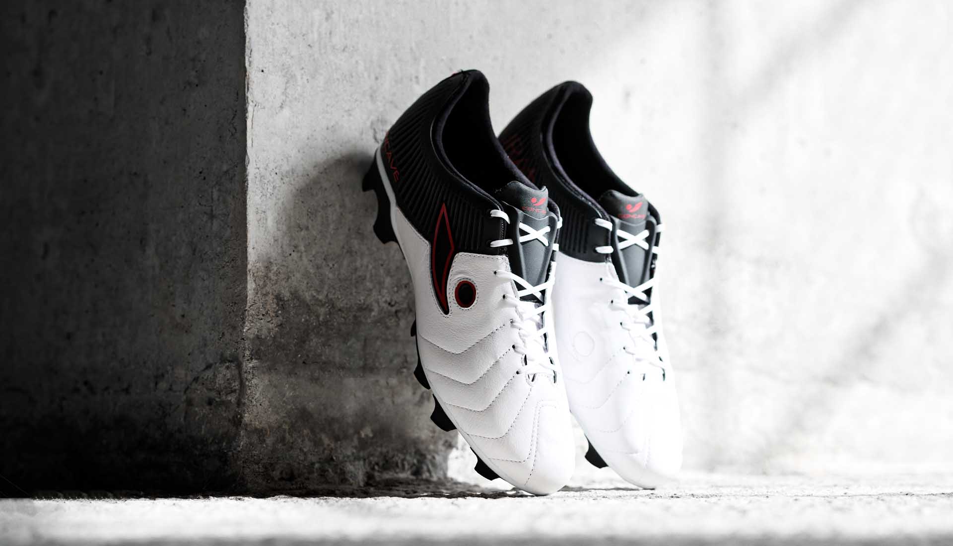 The Aura, Concave’s heritage boot, has had something of a redo. The redesigned heel offers greater stability and comes in black, contrasting nicely with the white premium leather vamp that’s designed to mould to your foot, offering the best touch and feel on the ball. The Concave branding then pops in red for a strong finishing look all round.