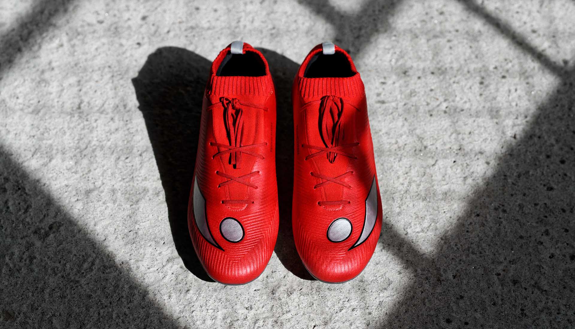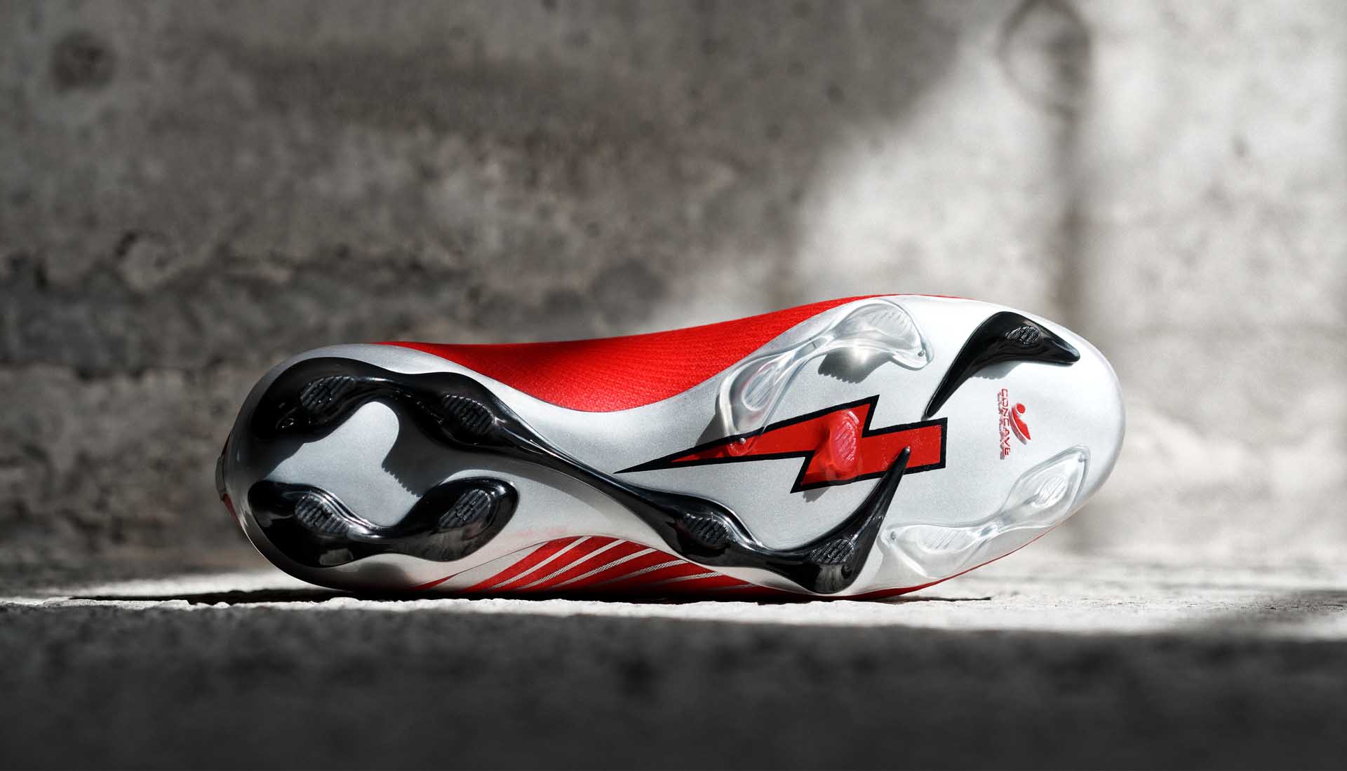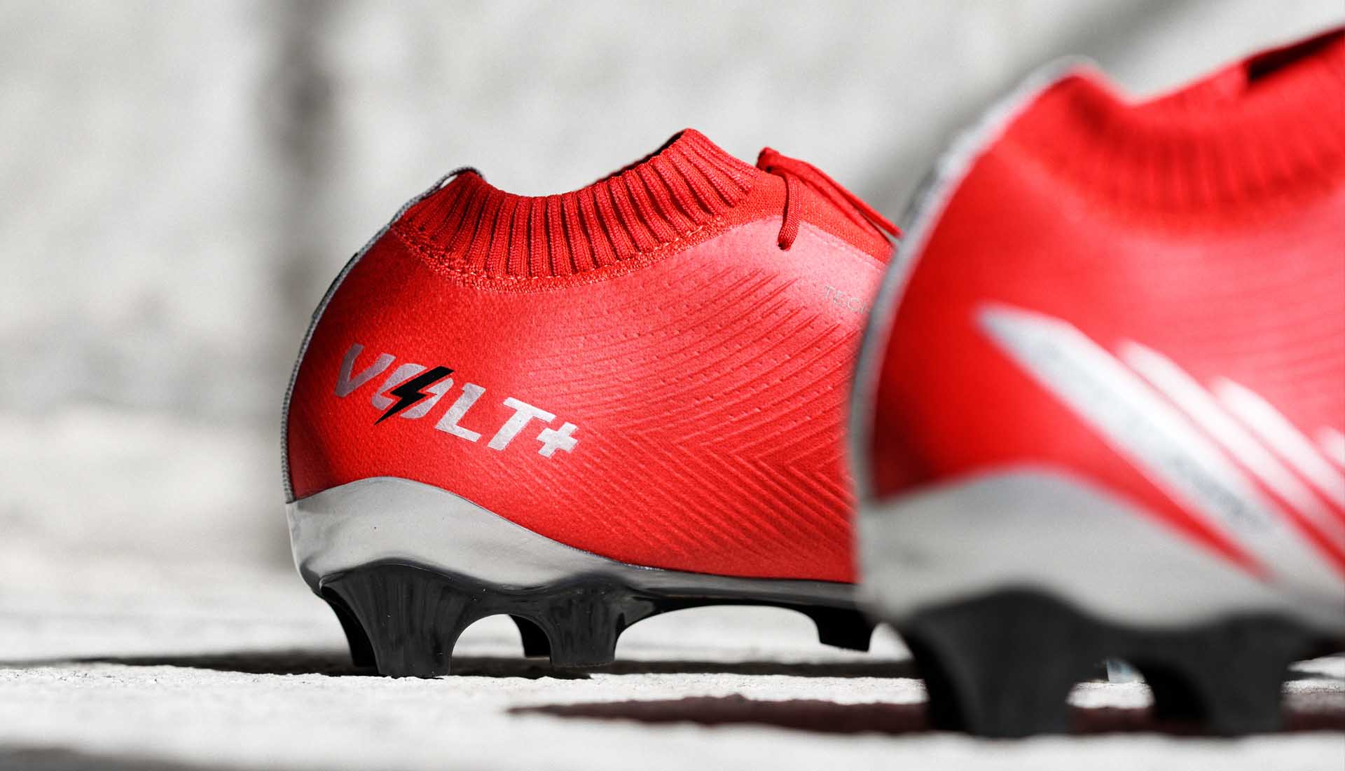 The Volt+ is Concave’s speed silo, and it arrives ready for the season’s climax in a bold red look that’s boosted by silver accents throughout. It features a Techstitch upper that constructed from Micro-Yarn material, providing a soft touch and close feel on the ball. Then there’s Concave’s unique selling point; the thing that allows them to lay claim to being “the planet’s most powerful boots” – a fully integrated Concave Powerstrike Design is built into the Micro-Yarn upper including a knitted sock design.