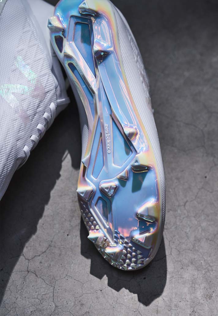 At first glance they might look like your standard whiteout collection, but on closer inspection it's all about those finer details when the boots are in motion – that's when the stunning shimmering effect appears on the soleplates and 'N' branding on the upper of both the Furon and Tekela. Can you make a bad whiteout? Probably not. But you can add that bit extra to take it to the next level, and that's what New Balance have done.