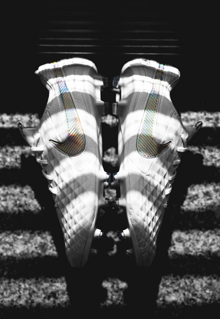 “Nouveau” translates simply as “New”, and the cleanest of clean aesthetics on display here certainly play into that fresh feeling. Dripping with premium vibes, an iridescent Swoosh shimmers as it stretches from the heel down the medial side, ending right at the point where the Quadfit Mesh heel ends and the premium, unstitched K-Leather takes over, covering the entire forefoot for the softest of touches. Underneath that outer layer is a Flyknit tunnel, which wraps the mid-foot for a custom fit. This colourway won't feature on the feet on Nike's squad of contracted Tiempo players; they'll be wearing the "Under The Radar" edition.