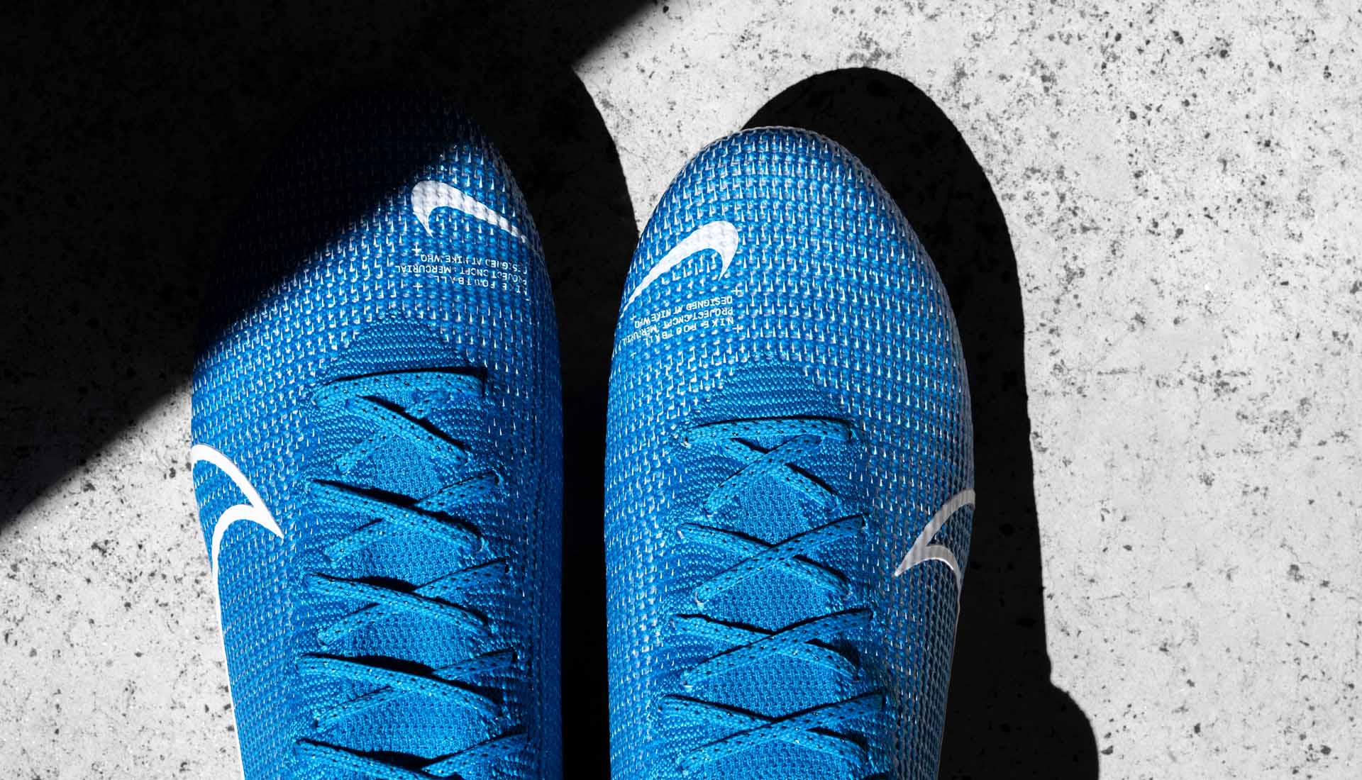 So what are we looking at here? Let's start with an upgraded upper. The structure of the knit upper of the 2019 Mercurial is more open than that of the 2018 version. This lessens any stiffness of the material, making it softer and more comfortable. High tenacity yarns, which are much lighter and stronger than previous Merc yarns, are then integrated into the structure for lockdown from heel to forefoot. These high tenacity yarns keep the boot from stretching out and make the 2019 Mercurial upper Nike Football’s strongest Flyknit offering to date. The upper construction also marks the first time Flywire and Flyknit have been melded into one.