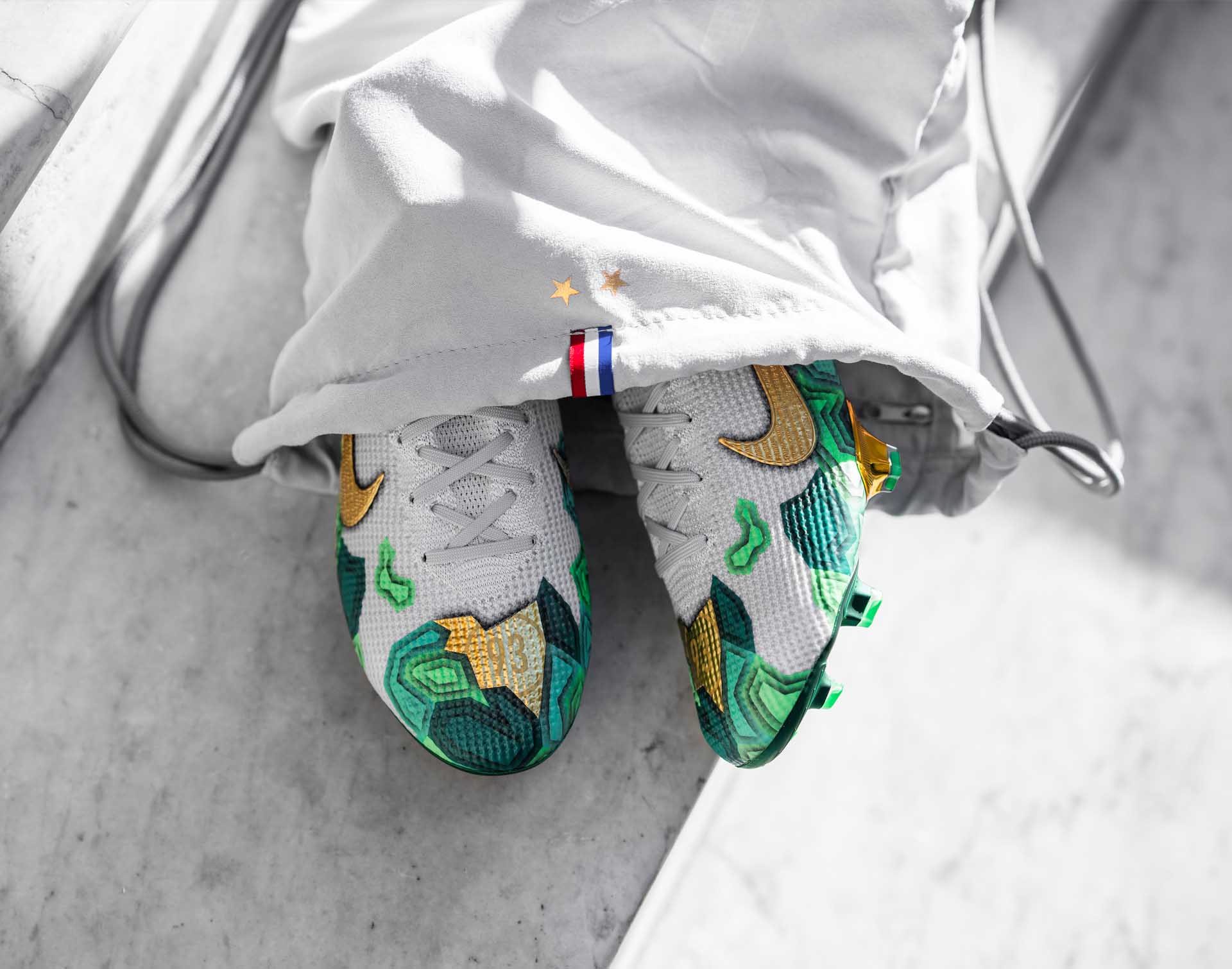 Headlining the full collection is the Nike Mercurial Superfly VII Mbappe Elite football boot which pays homage the player's home district of Bondy in Paris. Following in the footsteps of Ronaldo, Ronaldinho and Neymar, Mbappé becomes the latest Nike icon to receive his own signature boot series; a marker of how the brand position the Frenchman moving into a new decade.