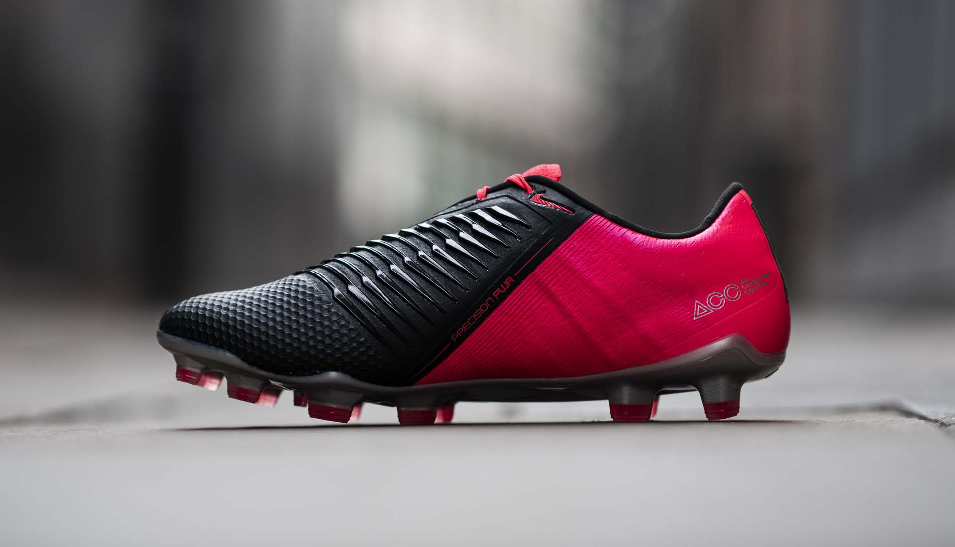 The PhantomVNM takes on some strong CTR-vibes, with the red wrapping around the heel and stretching up the lateral side, upon which is a shimmering Swoosh. The black then covers the forefoot, stretching down the medial side, while the silver of the Swoosh is then carried onto the soleplate, with red stud tips completing the look.