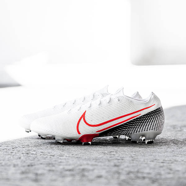 Finally there’s the Tiempo Legend VIII, which features the biggest point of difference in the pack, with a block white wrapping around the heel, as has been seen before, most recently with the “Black/White/Volt” colour-up. But as with the rest of the pack, it’s combined with red, which dominates the forefoot. You can expect to see all of Nike’s contracted players switching into the ‘Future Lab’ pack this weekend.