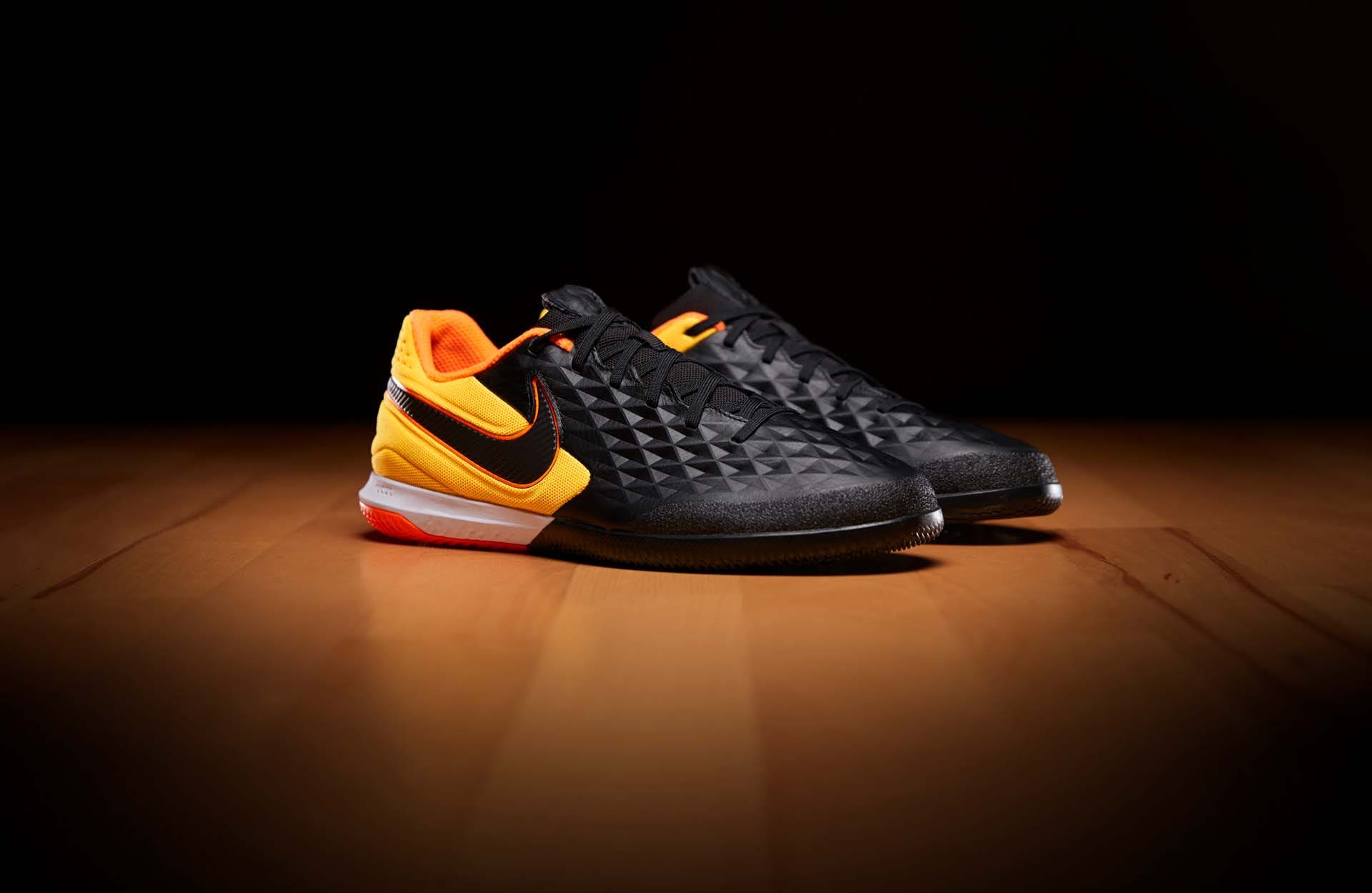 Pack releases in the traditional sense are usually reserved for the on-pitch silos, but now Nike concentrates on the court, bringing some swagger to the small-sided game with the launch of the Lunar Gato II, Tiempo Legend VIII React Pro and Premier II Sala in linked black, orange and white colourways.