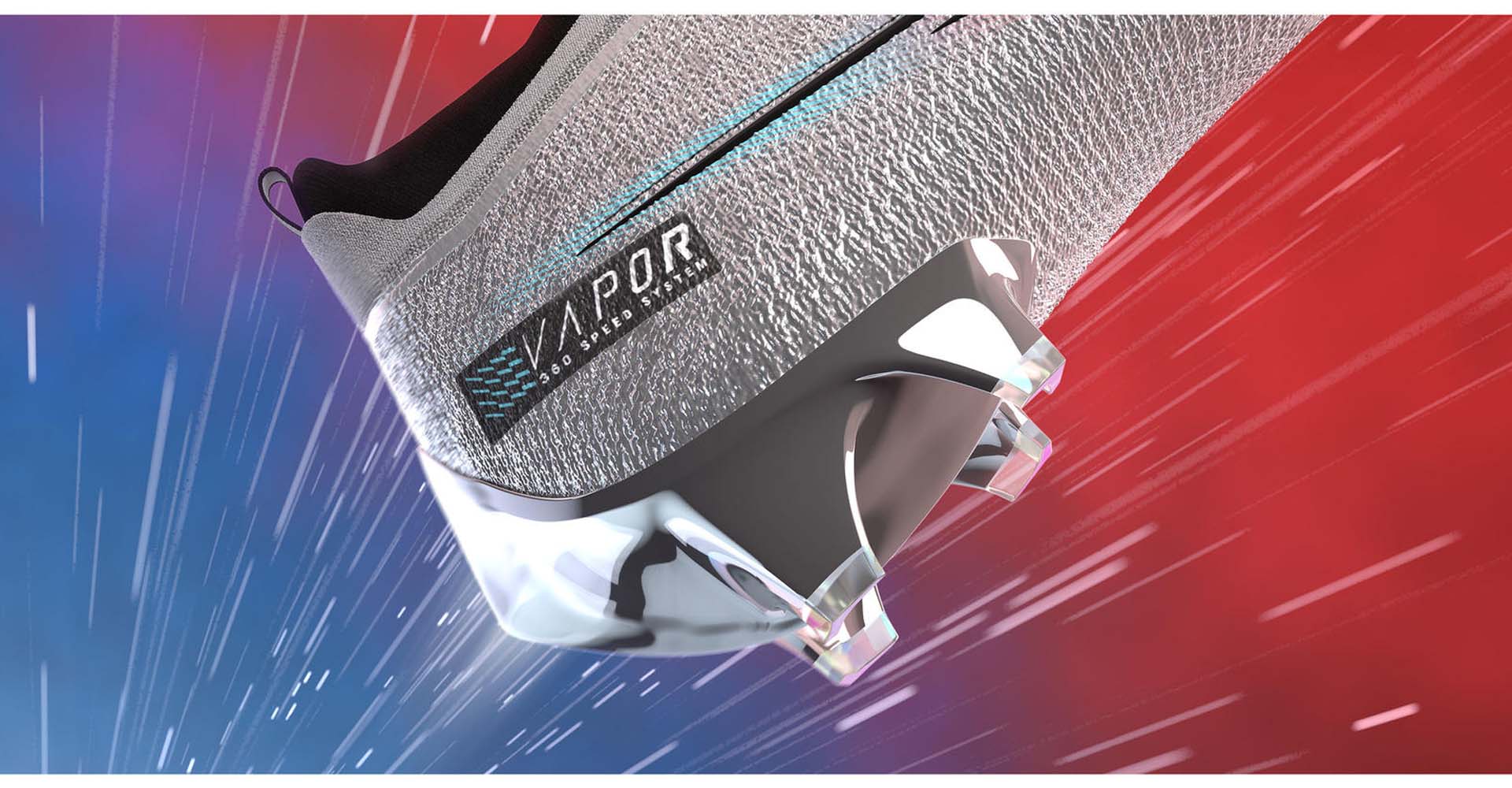 The Nike Vapor Edge offers instant propulsion and power transfer, while the ultra-light, aerodynamic design also provides a responsive feel thanks to its independent traction pods. The Vapor Edge's airy aesthetic is complemented by a second-skin fit that employs Nike Flyknit 360-degrees around the foot and propulsion chassis. The design was a direct response to player feedback to create a cleat that feels like a sock with spikes.