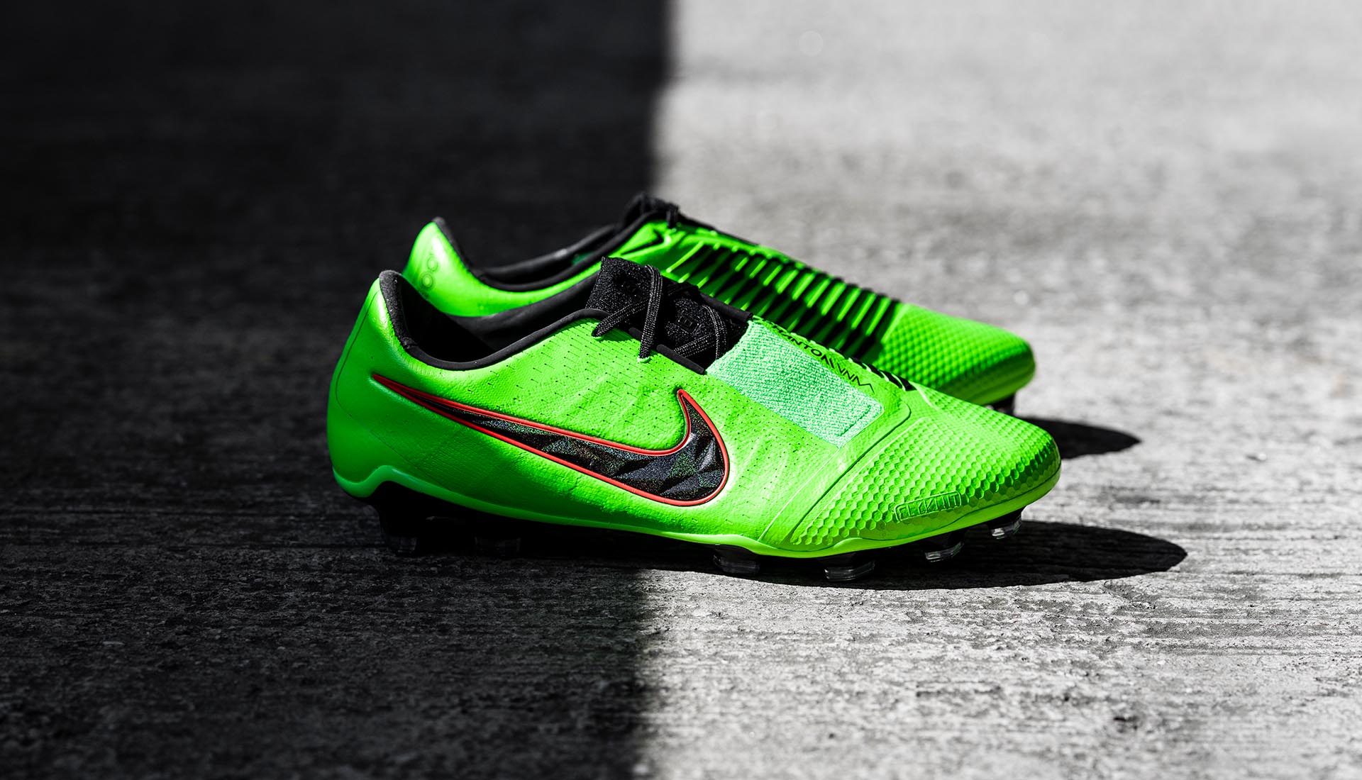 The Phantom VNM carries a little bit more than just a fresh colourway. If you feel like this colour combination looks familiar then you'd be right; we're talking about the Nike T90 Laser III "Electric Green/Black/Red" edition from way back in 2009. We're talking Wayne Rooney & Fernando Torres taking the nets off Premier League goalposts. The T90 edition was laid to rest in 2013 when the Hypervenom was introduced, and the Hypervenom has since evolved into the Phantom VNM series, hence the link here with this colourway.