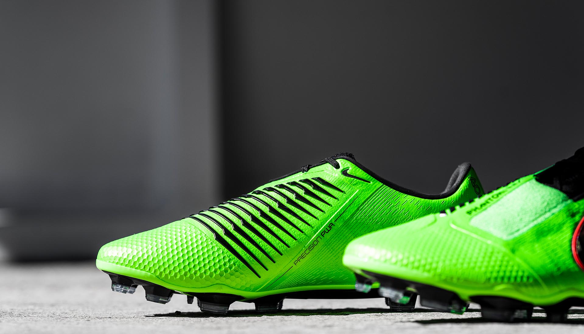 The Phantom VSN loses the flashes of red, but cuts perhaps the smartest overall aesthetic in an eye-catching combo of that vibrant "Green Strike" alongside platinum and black detailing. Nike are ready to roll.