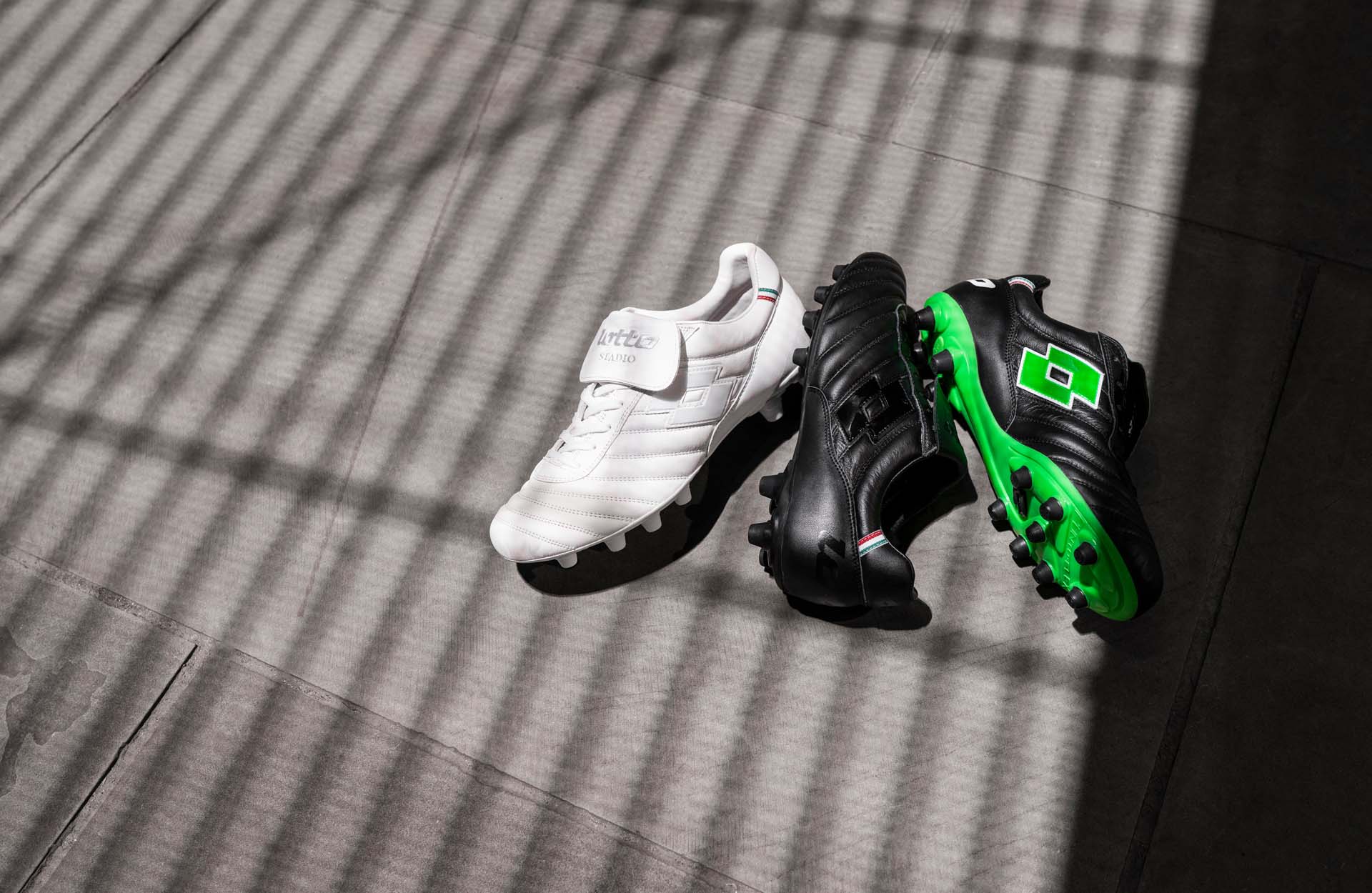 Lotto were one of the dominant forces in European football throughout the 80s, 90s and early 00s and the Stadio was their showpiece boot. Worn by legendary players such as Andriy Shevchenko, Paul Gascoigne, Laurent Blanc, Gheorghe Hagi, Cafu, and Clarence Seedorf it was present on every pitch in every big occasion, recognisable for its trademark black look with popping green accents. But here it’s been stripped of colour, landing in a complementing contrast to the blackout edition that was released late last year.