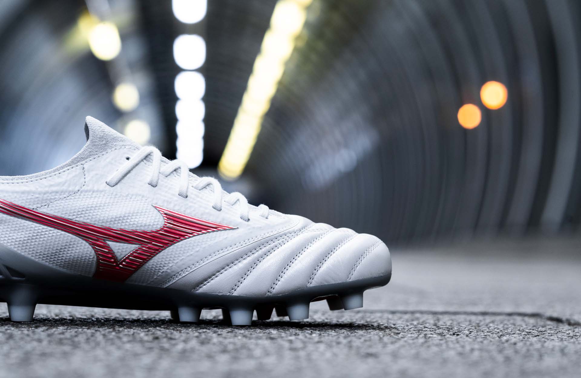 For the Morelia Neo III β, it’s a far more understated “White/Fiery Coral look”. We say understated, but that’s only when it’s sat next to the Rebula Cup. It’s not all that dissimilar-a-look from the ‘Runbird DNA’ launch colourway, swapping out the black soleplate for the silvery grey offering seen here. This is its fourth paint job since the original June release. The ultra-thin K-leather of the upper is combined with the innovative β knit collar to ensure the perfect connection of your foot to the boot, and it’s all contained within what is the Japanese brand’s lightest Morelia ever. Options aplenty for the 20/21 season from Mizuno.