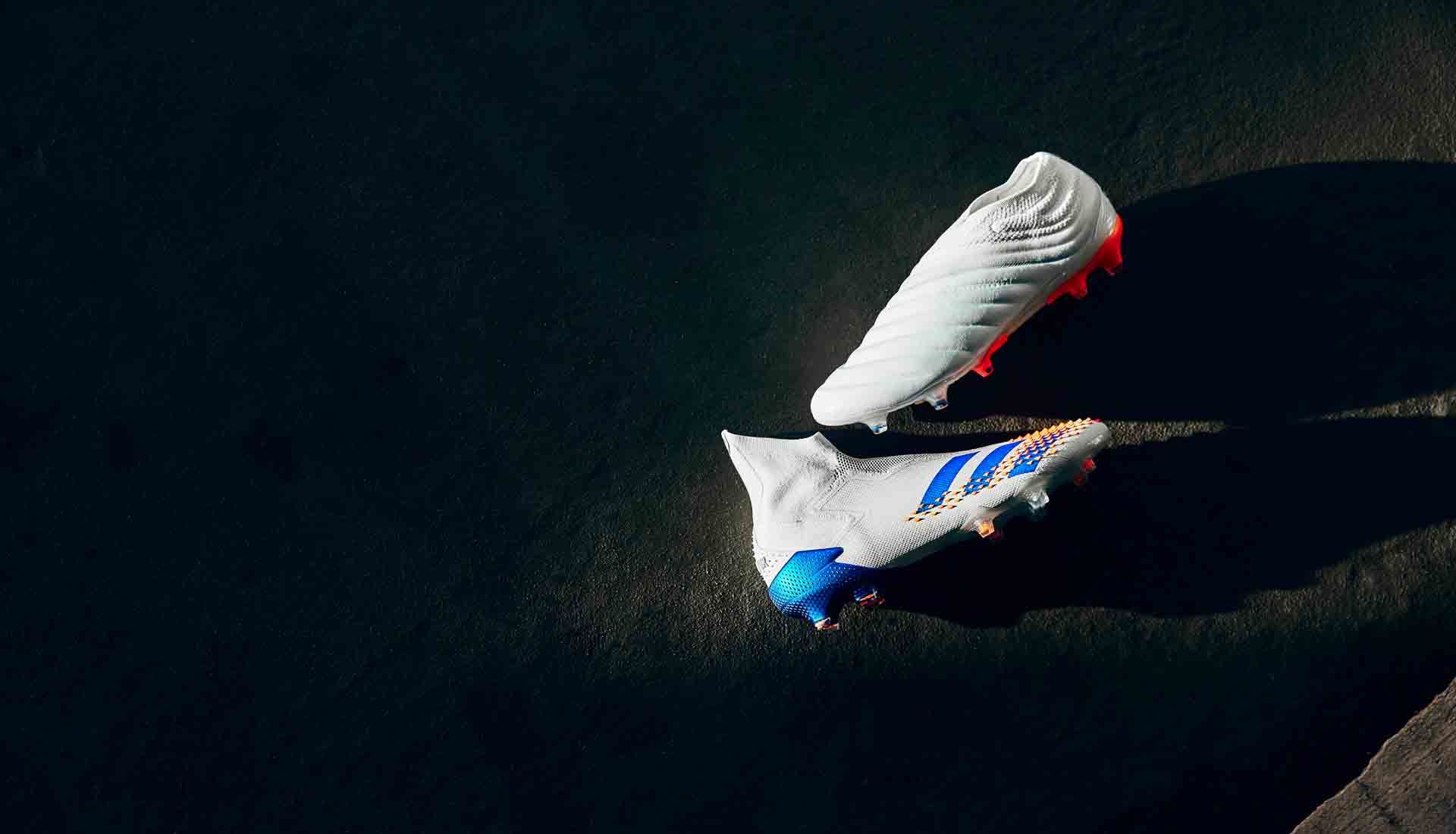 For the COPA 20+, it’s the same white base, joined by pops of red through the heel, with the Three Stripes once again coming in blue. Expect to see Jude Bellingham and Fikayo Tomori pulling these on, although more likely to be the 20.1 versions.