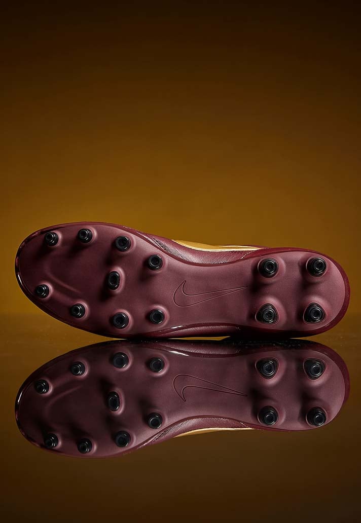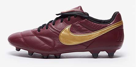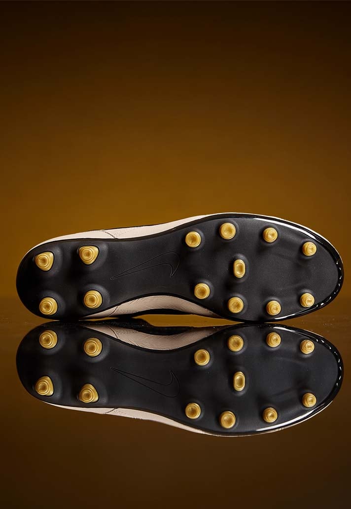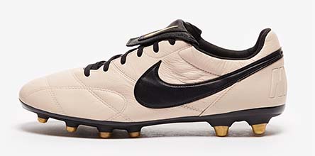 Then there’s the “Oatmeal/Black/Metallic Vivid Gold” option, which is again inspired by a colourway worn by Ronaldinho, albeit a little less faithful in its interpretation. The base colour is close, but off by a shade, while the Swoosh remains black, as it was on the Tiempo. The studs are also remain gold, while black has more of a presence on the Premier II, featuring on the soleplate and around the collar, tongue and laces, linking it nicely with the “Beetroot” counterpart. Two belting options for the return of football, and both priced at a modest £90. Can’t argue with that.