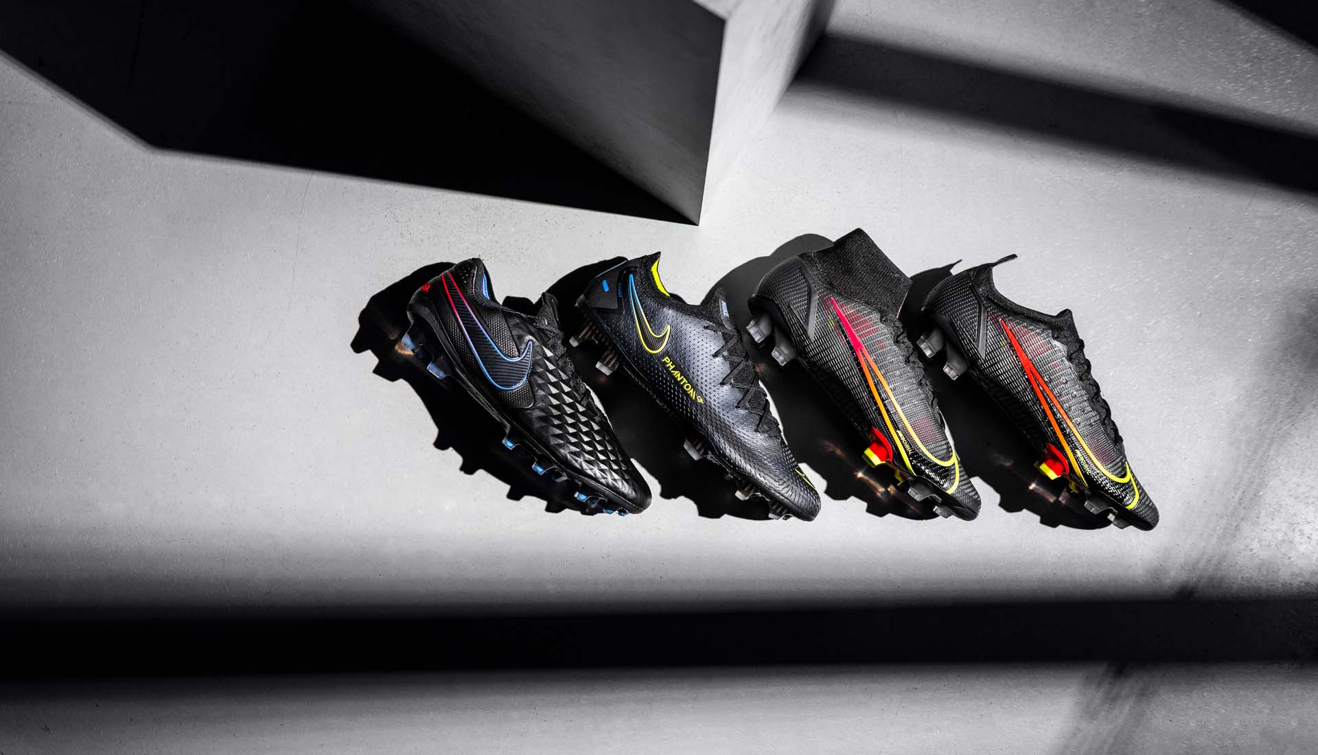 Another option that's always going to appeal to the grassroots performers, Nike toned everything down for an alternative look for its lineup. The ‘Black x Prism’ pack sees colours flash through the Swoosh on each silo, transitioning through blue to yellow on the Phantom and blue to red on the Tiempo. And for the Mercurial Vapor and Superfly, which arrived fashionably late, it’s red to yellow. Subtle and striking at the same time.