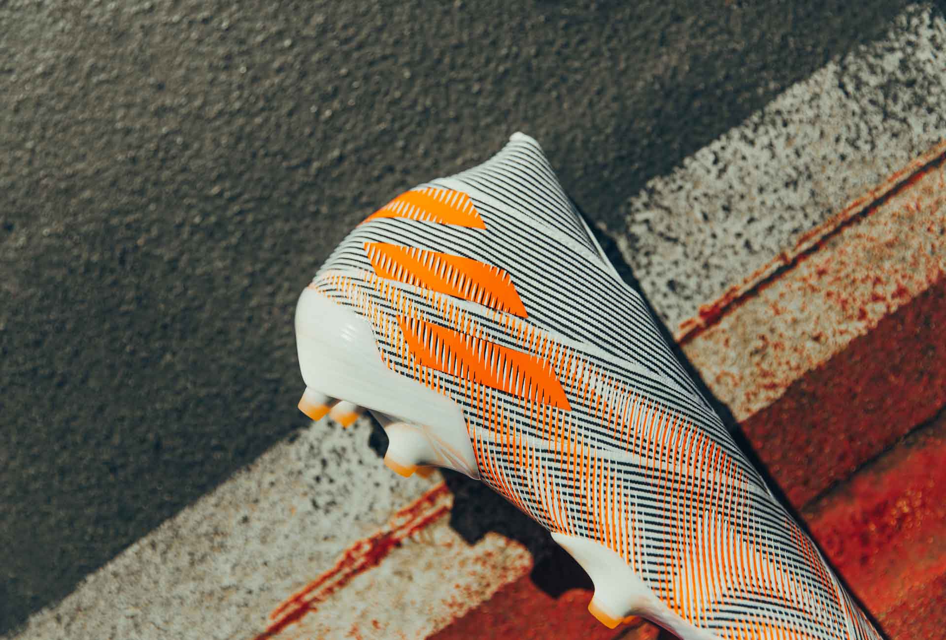 That leaves the Nemeziz, in what is rumoured to be one of the last looks for the silo before it is retired. For what could be its final flourish, it takes on a white base with “Screaming Orange” popping through the revolutionary and unique upper Tension Tape upper. It’s then finished off with accents of core black throughout.