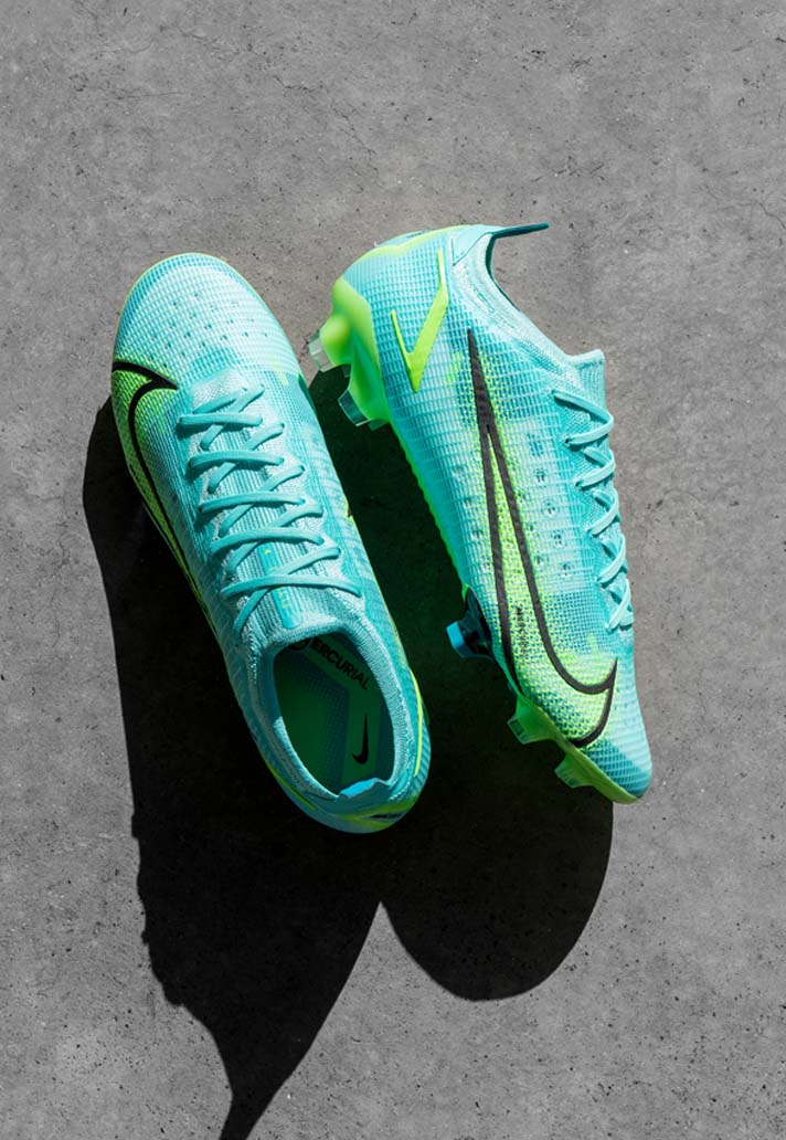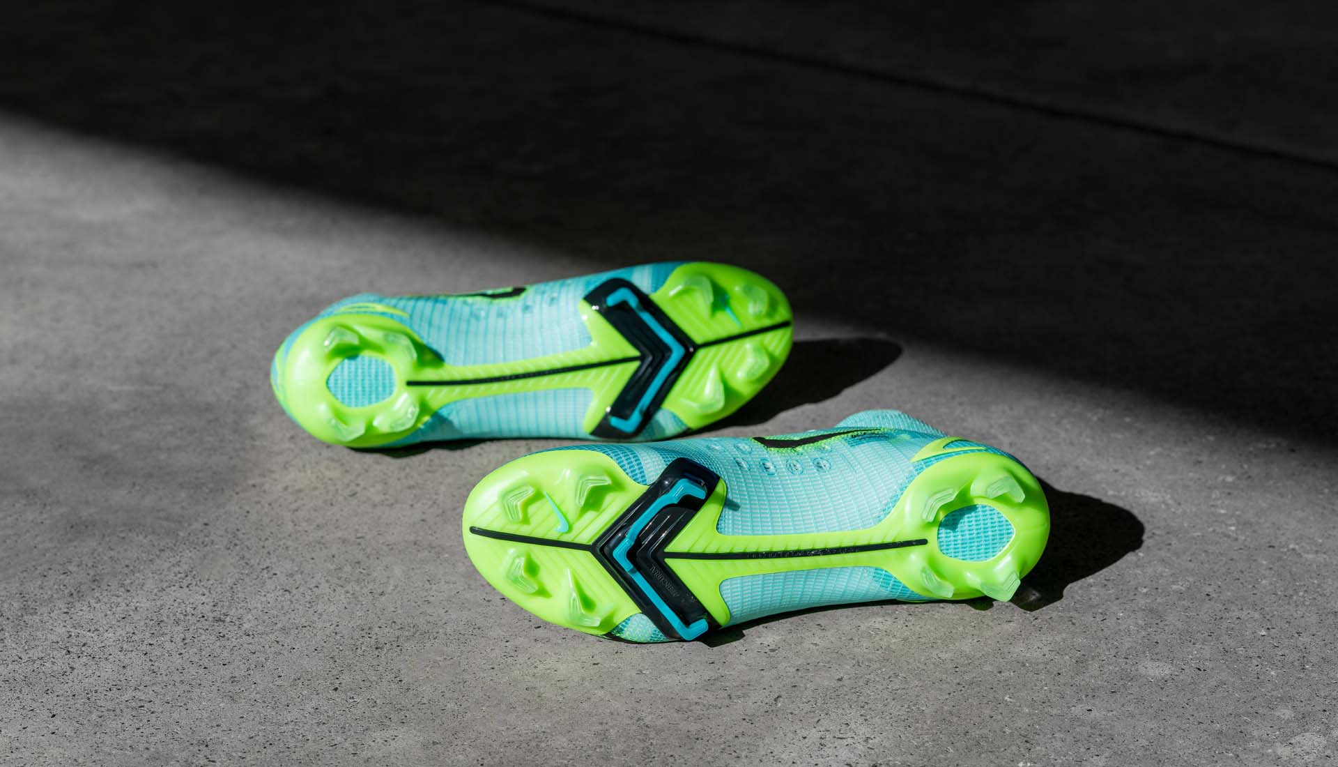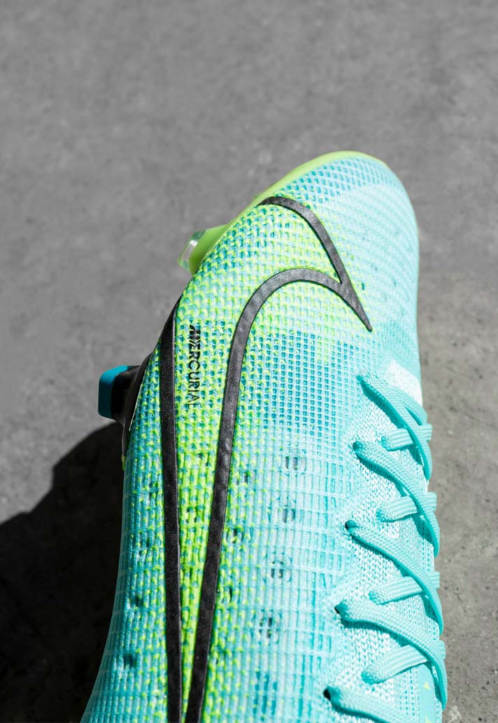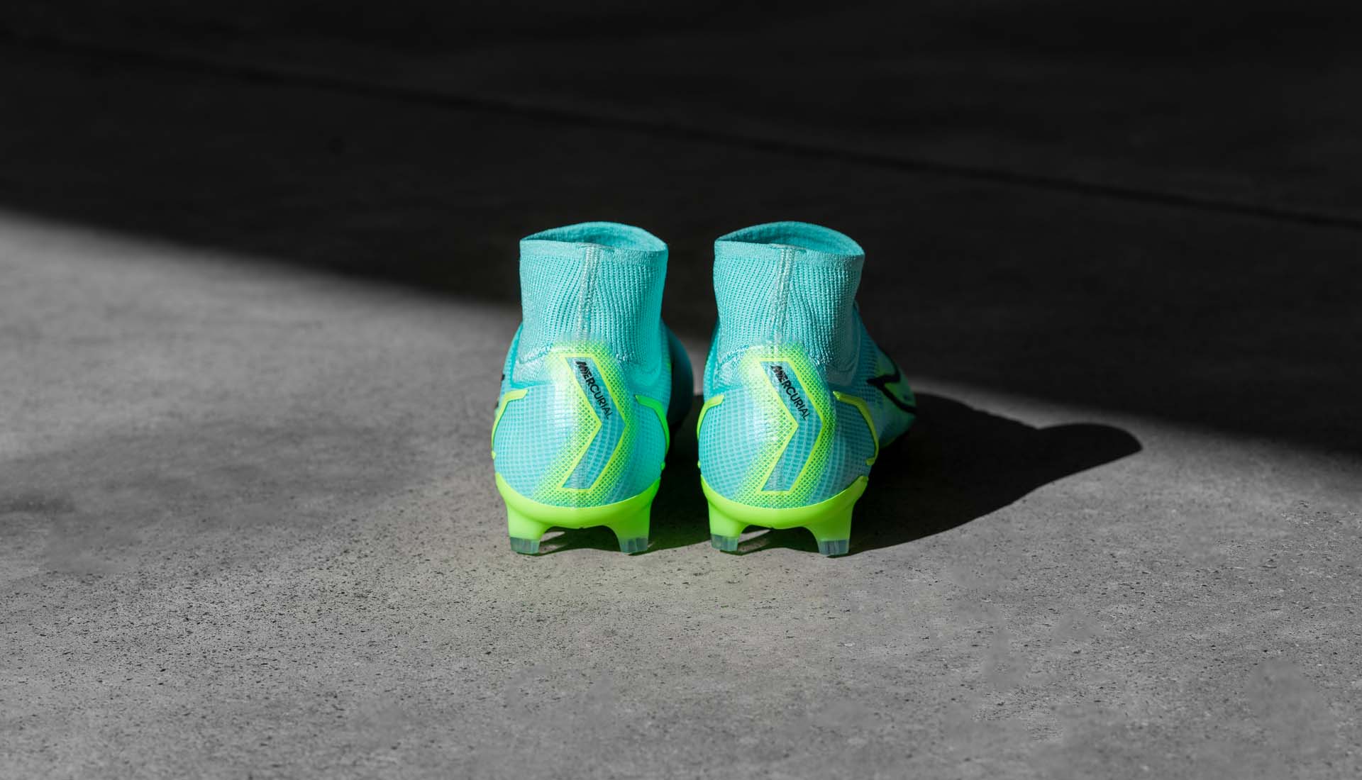 As is often the way with a tournament pack, the 'Impulse Pack' is designed to be seen. The Mercurial, in both Vapor and Superfly models, arrives in a “Dynamic Turquoise/Lime Glow” colourway. It sees the former colour dominate the base, with the latter popping through the soleplate, and through the bold, black outline Swoosh.